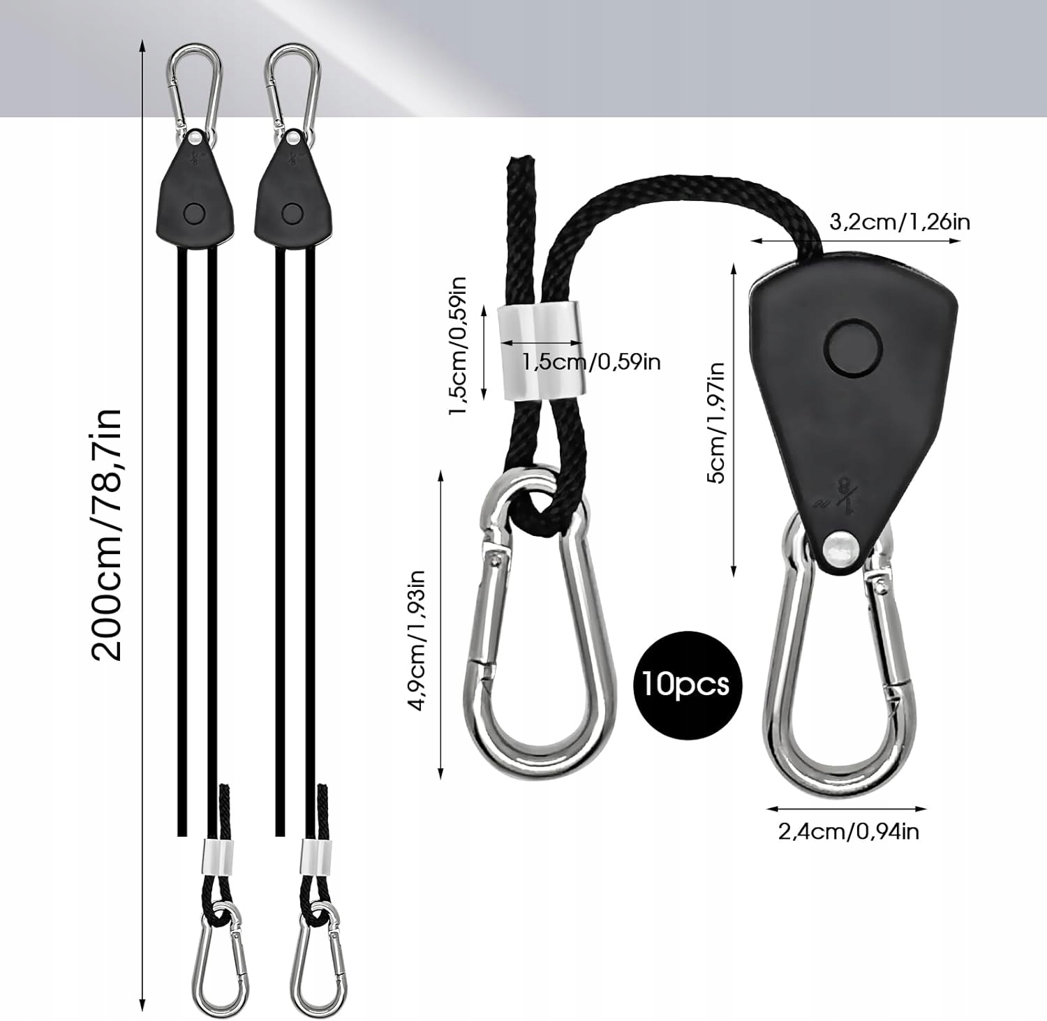 🏕 【широкое использование】 Связь с карабинером в дополнение к подходящей для подвешивания веревки, ламп для выращивания, фаров, углеродных фильтров, вентиляторов, горшков, вентиляторов, вентиляторов и многих других мест, его также могут использоваться для застежки палаток для кемпинга.