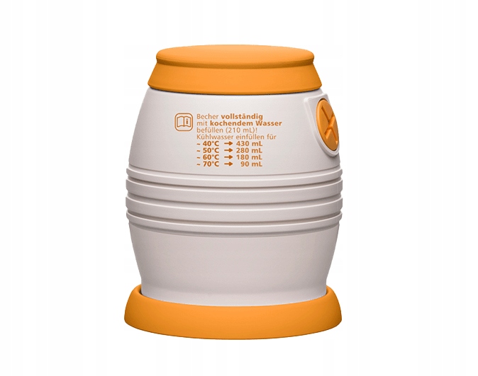 Вы можете выбрать между 70 ° C, 60 ° C, 50 ° C и 40 ° C. Чтобы сделать это, просто добавьте подходящее количество холодной воды в холодильник, заполните прилагаемый контейнер свежес вареной водой и пропустите воду через него. Благодаря прикрепленному теплоизоляционному силиконовому кольцу, вы можете легко коснуться бутылки с горячей водой и привинтить к нему прохладное твистер.