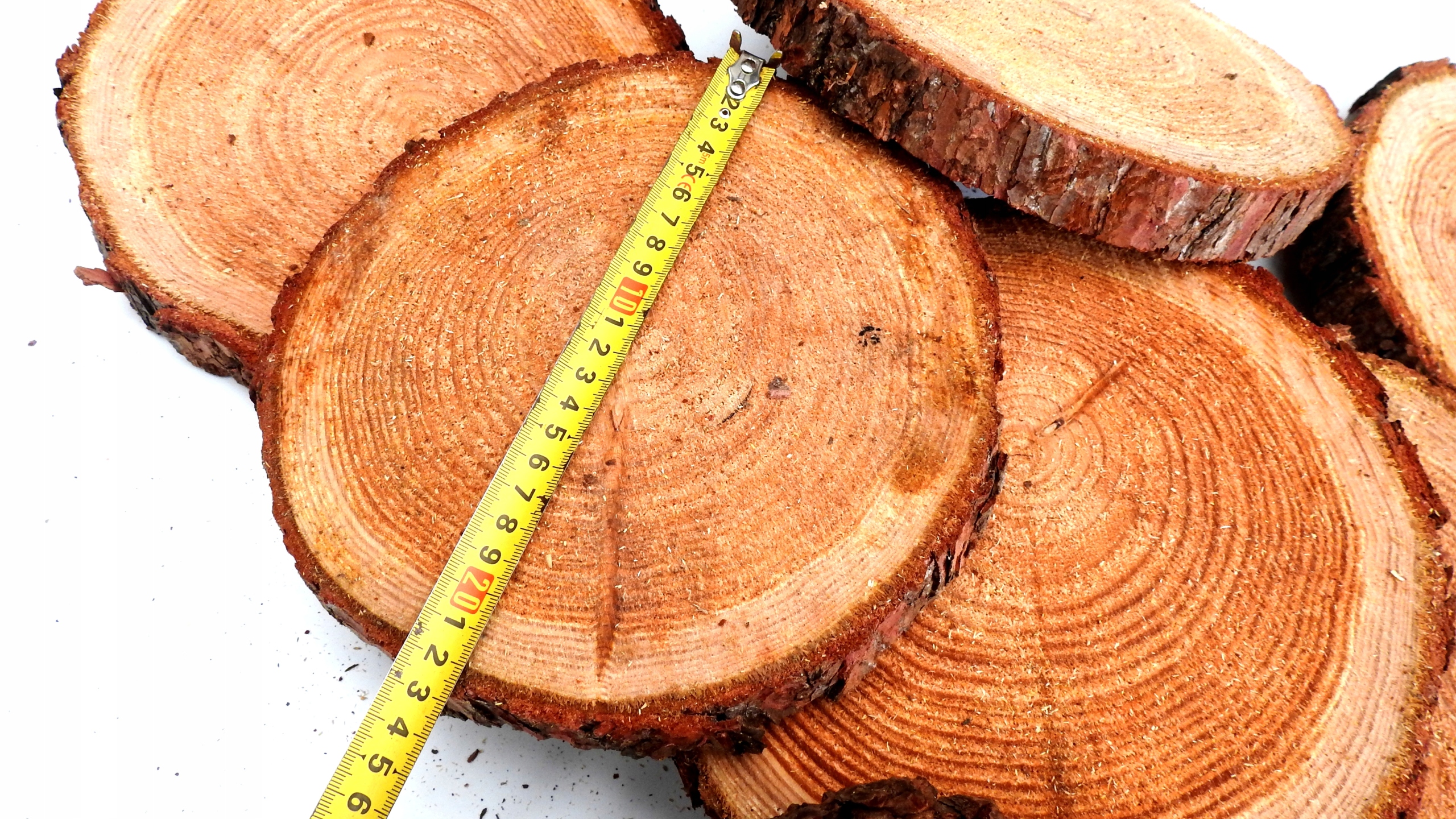 Поверхность ломтиков не полируется и после нарезки имеет первоначальную структуру.Внимание:Ломтики требуют сушки, так как они свеженарезанные.Неправильная сушка или отсутствие сушки, оставление ломтиков во влажной среде приводит к их плесневению! Это касается свежих и сушеных срезов. Лучше всего обеспечить каждый срез притоком воздуха, что позволит обеспечить щадящую сушку и предотвратить чрезмерное растрескивание древесины – чем медленнее мы сушим, тем меньше трещин.Трещины появляются часто из-за того, что древесина срез поперек волокон имеет такие тенденции, поэтому в упаковке могут находиться и срезы с трещинами!Древесина лиственницы имеет большое количество смолы, поэтому она может быть видна на поверхности среза.