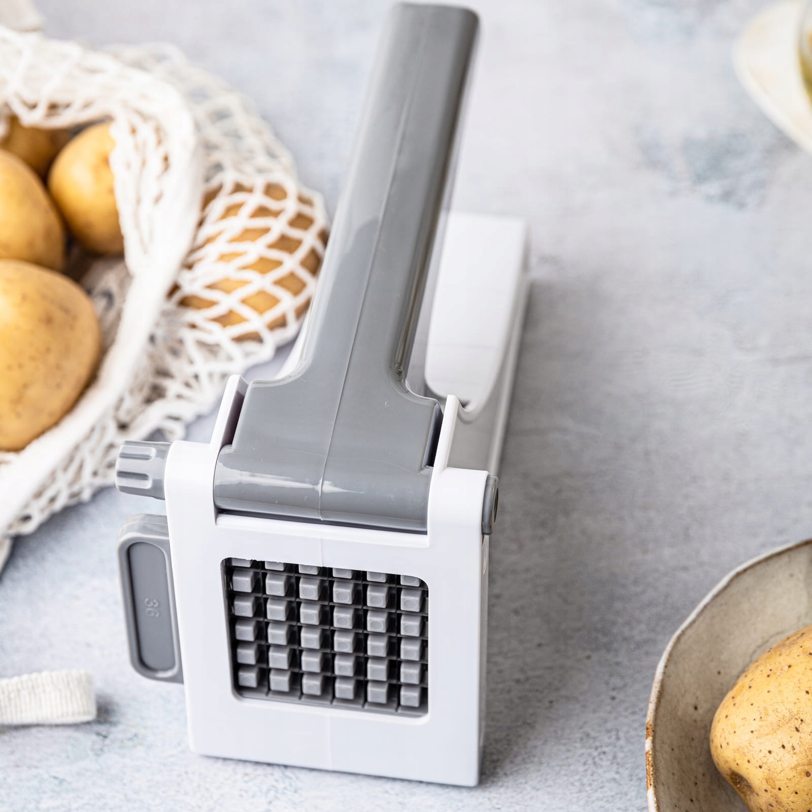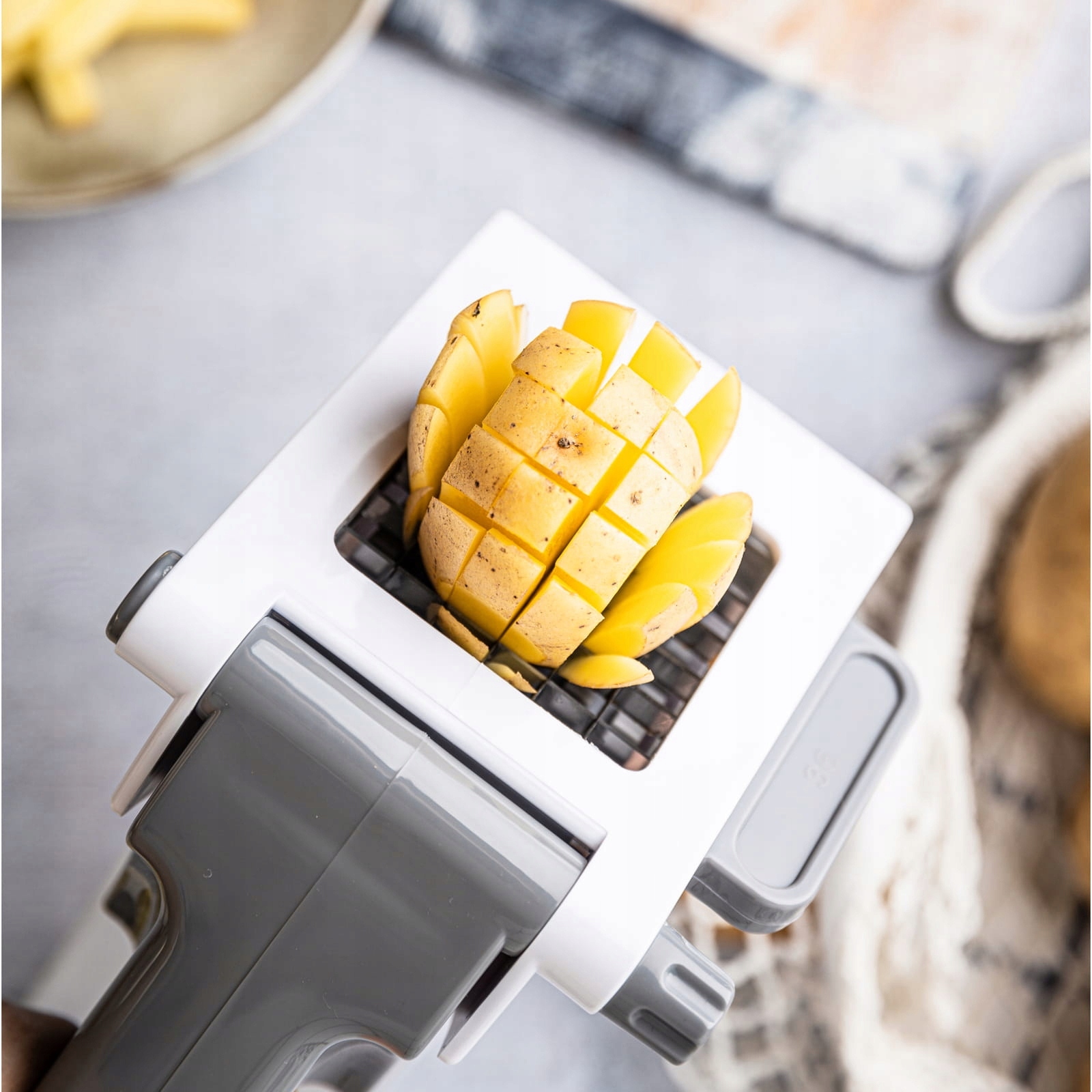 Спящая машина для картофеля фри от бренда kinghoff . Степень состоит из тела, оснащенного не скользящими ногами и съемного лезвия из нержавеющей стали для разрезания картофеля на картофель фри.