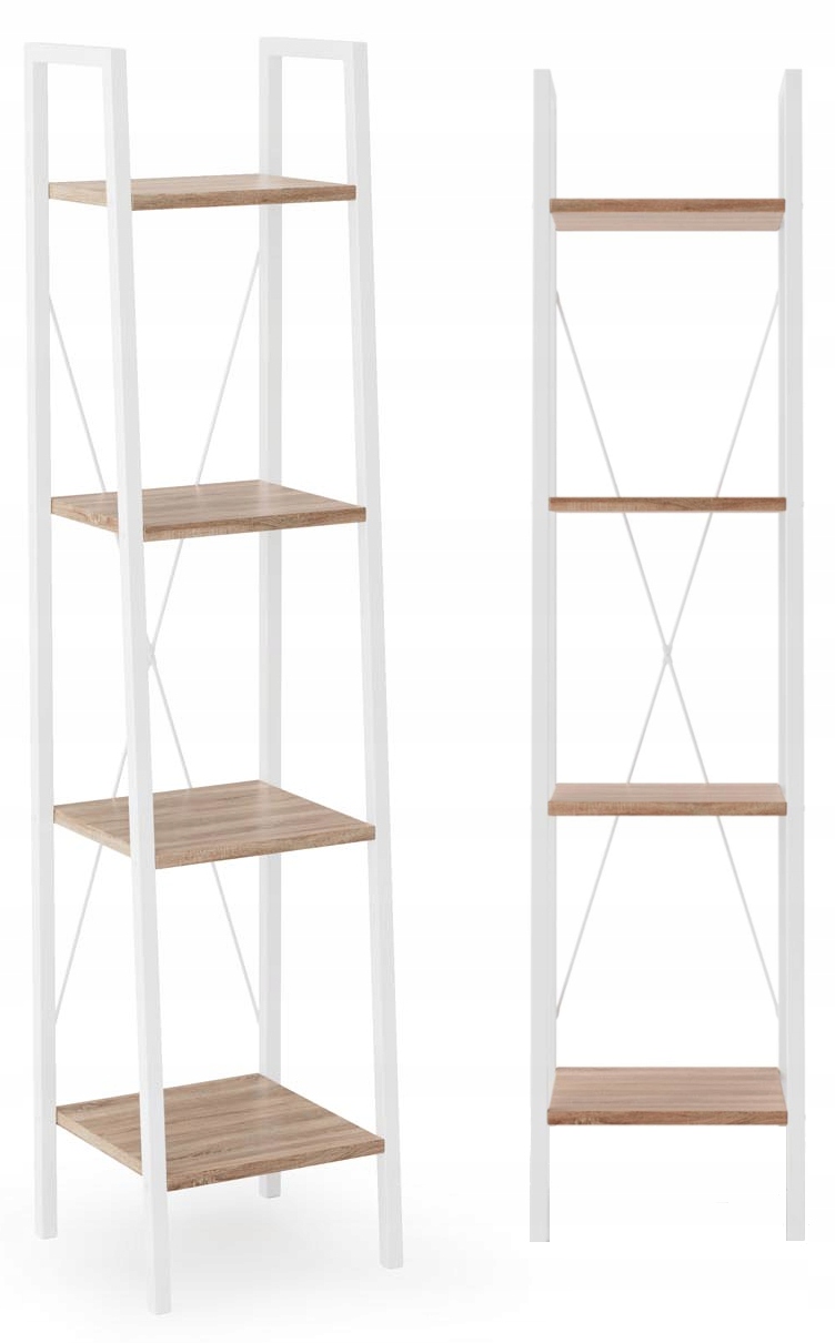 <ул>Популярная полка от известного производителя - Halmar. Четыре устойчивые полки из мебельного щита дуба Сонома. Прочная рама из стали с порошковым покрытием белого цвета. В задней части рамы расположены две пересекающиеся стабилизирующие балки, защищающие предметы от скольжения.