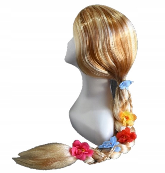 Набор включает в себя светлый парик, длинную оплетку, украшенную разноцветными цветами. Парик имеет гибкую сетку благодаря этому вы можете скрыть натуральный цвет волос