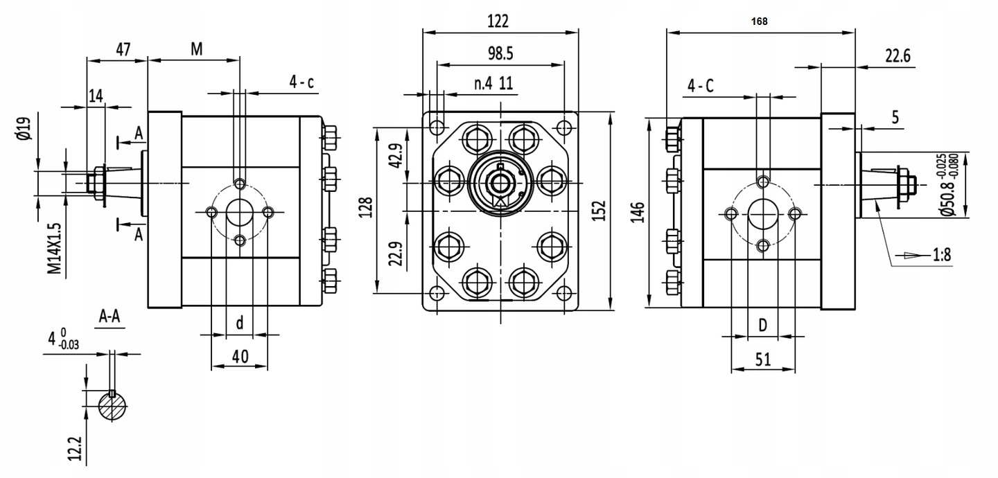 Порт Ssanie D1: 40 мм (4xm8), B1: 19 мм