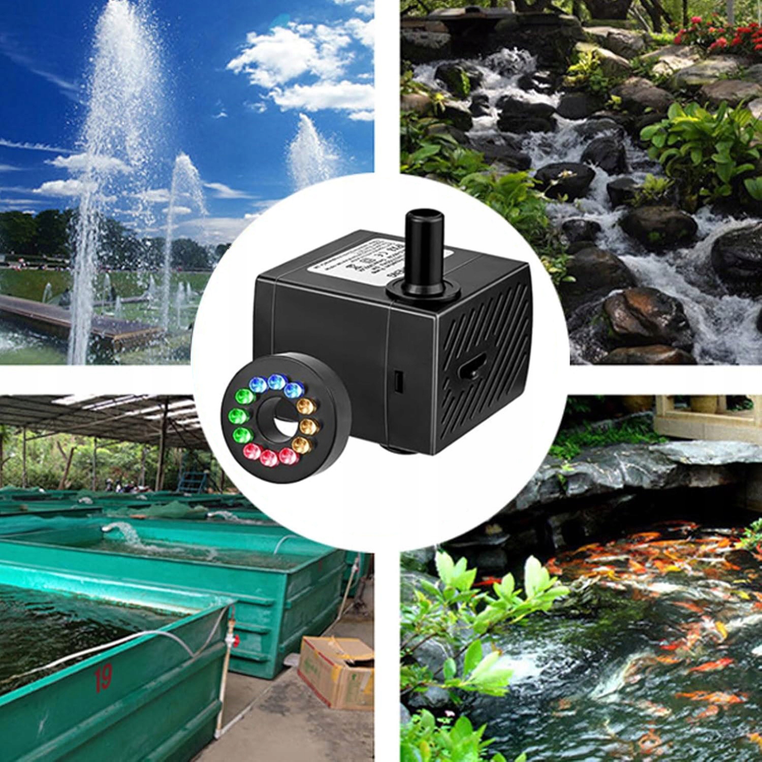 💧💧【 Большой светодиодный свет】: Водяной насос для аквариума имеет 12 водонепроницаемых светодиодных светодиодов с 4 изменяющимися цветами (красный, синий, зеленый, желтый), которые создают красочную атмосп.