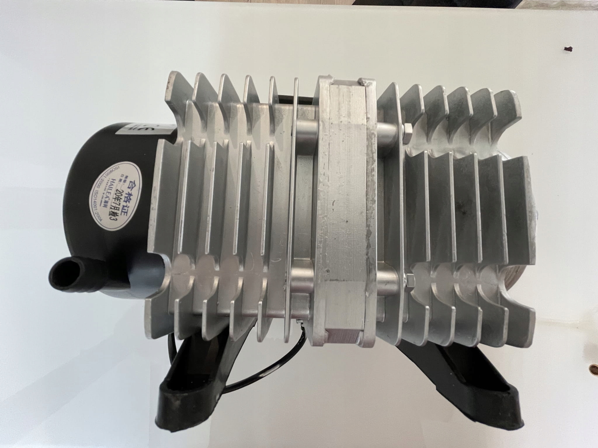 Электромагнитный насос также используется в прудах и суставах. Ни один из элементов насоса не смазан, что обеспечивает чистоту прессованного воздуха, что делает их безопасными для водных организмов. Тело с радиатором изготовлена из алюминиевого сплава PLN102, который предотвращает перегрев устройства и допускает его непрерывную работу. Поршень и цилиндр из термопластичного пластика увеличивают срок службы насоса.