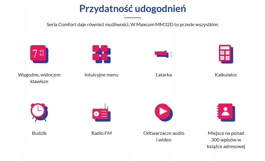 Телефон Maxcom Comfort MM32D изогнут специально для вас. Посмотрите, как незаметное изменение влияет на качество использования. Найдите телефон, который подойдет именно вам.