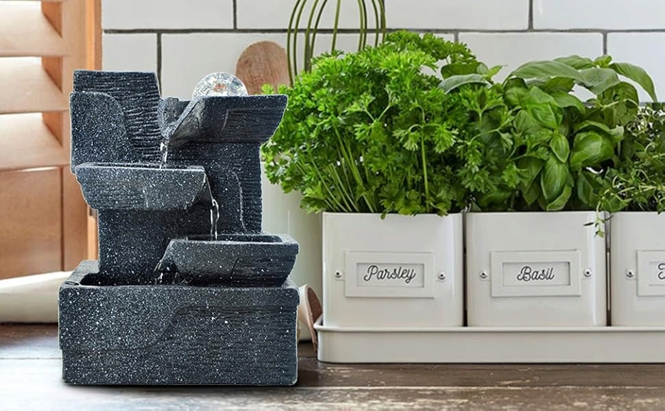 - Декоративный столовый фонтан в стиле ретро: дайте каждой комнате расслабляющая и очаровательная атмосфера; 4 уровня создают тонкий, успокаивающий поток воды, который имитирует спокойные звуки.