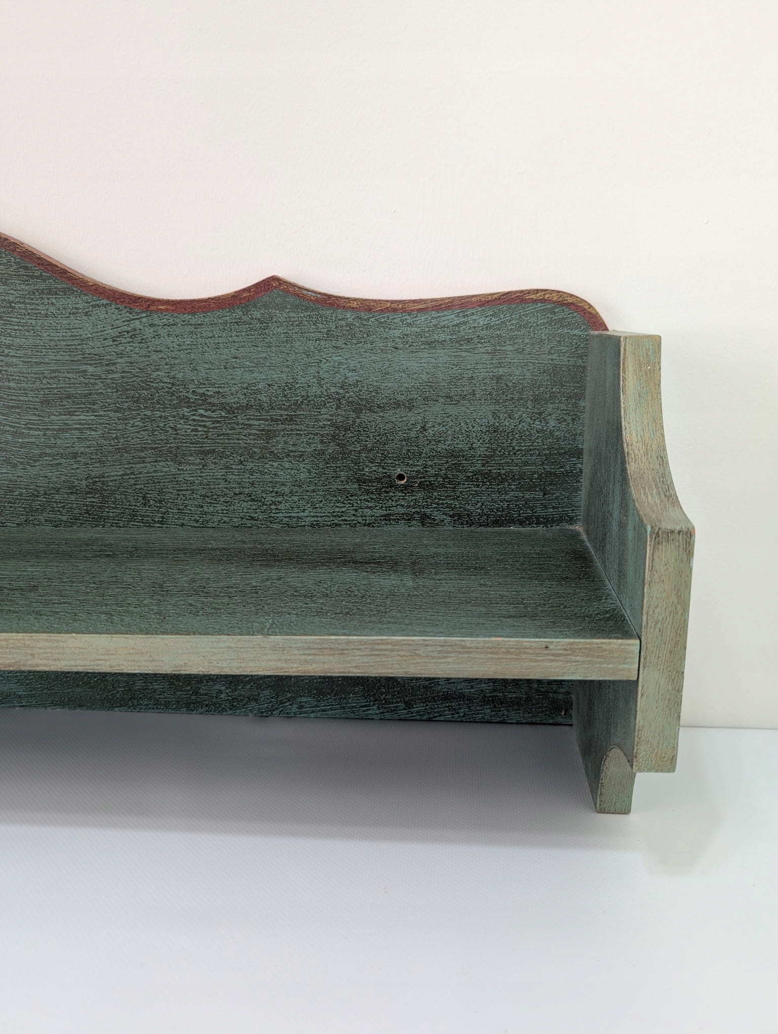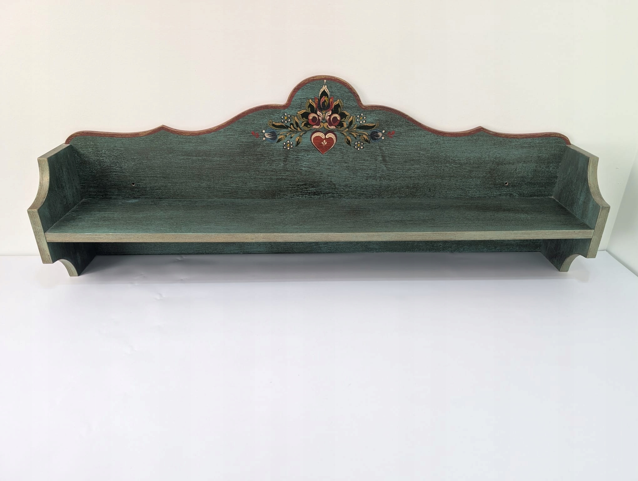 полка, зеленый шкаф зеленого цвета, отделанный цветочным рисунком посередине. На полке дается стиль и элегантность в сельских комнатах, но также как деталь в современном декоре.
