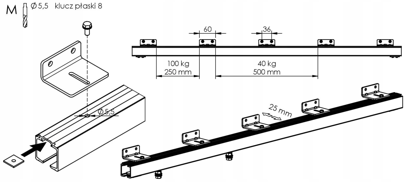 Укорачивание алюминиевой направляющей – доплата 30 зл.