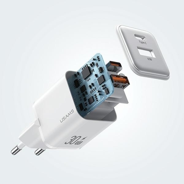 Настінний зарядний пристрій Usams USB-C+ USB-A Pd 3.0 30 Вт