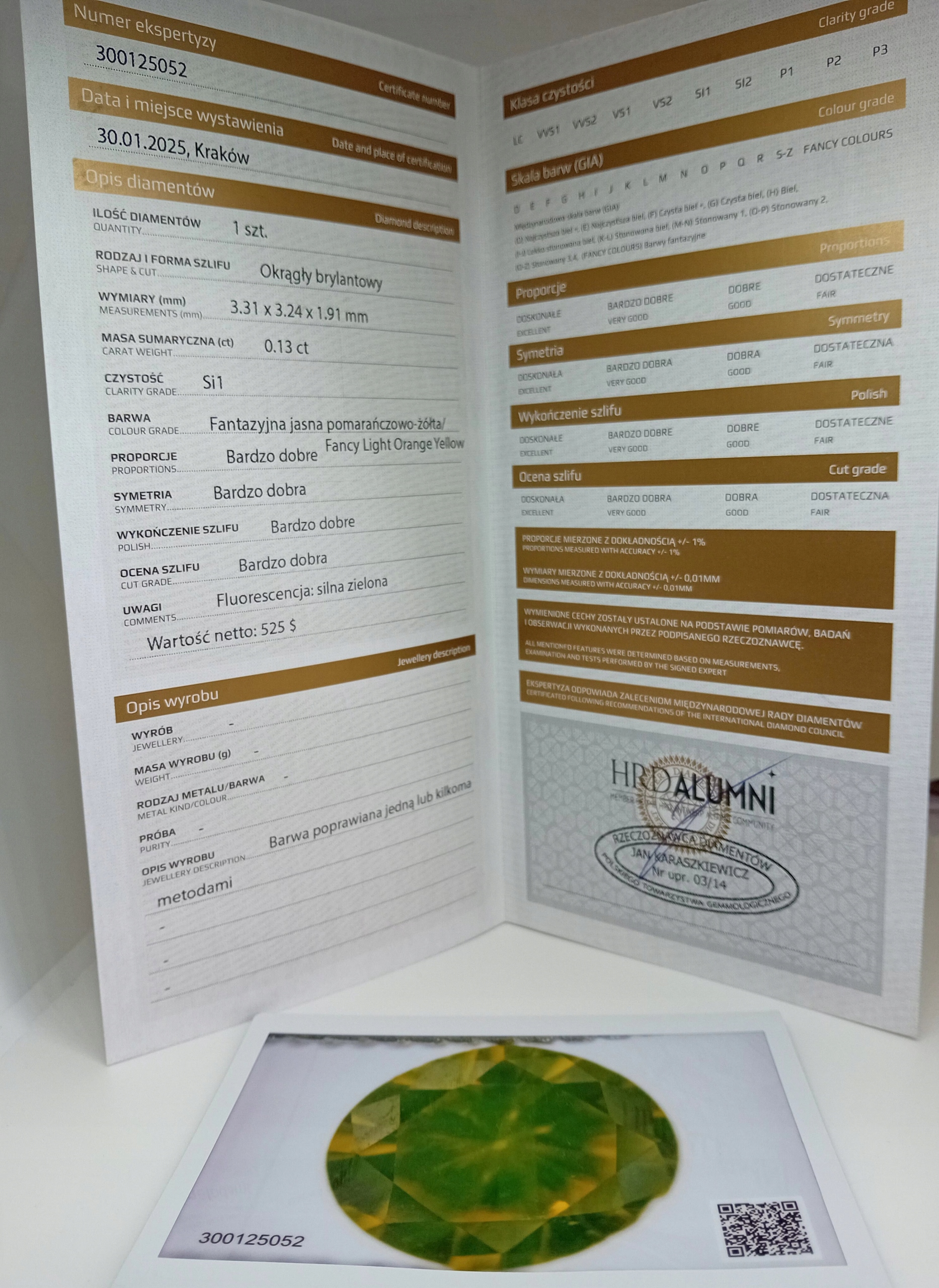 Натуральный бриллиант 0,13 CT SI1 Сильная оценка флуоресценции $ 787 долларов США