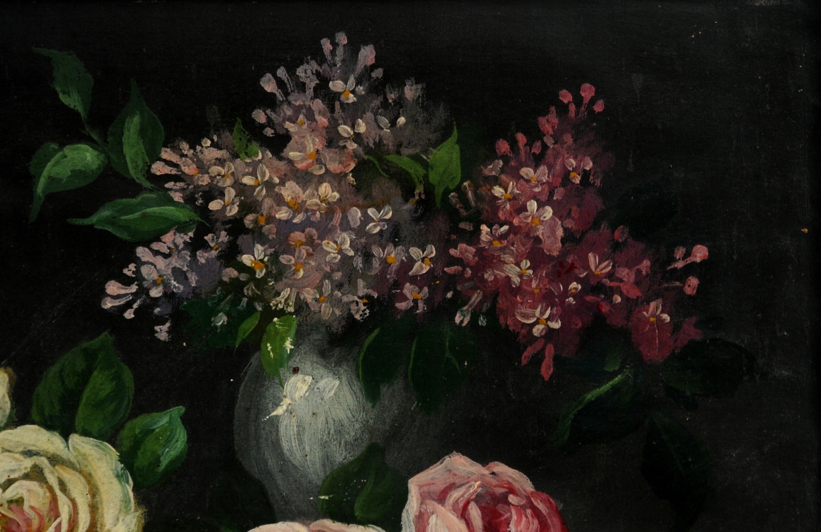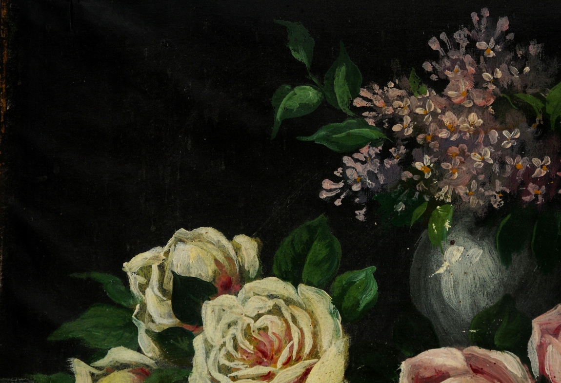 «Натюрморт с розами» очень старая красивая нефтяная картина !!!