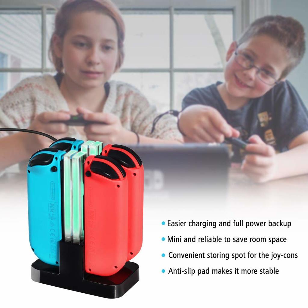 Плата 4 Контроллеры: зарядная станция, позволяющая одновременно заряжать 4 контроллера Nintendo Switch Joy-Con. Док -станция также является стильным местом для хранения игровых контроллеров, благодаря тому, что вы всегда заряжали контроллеры Nintendo для себя и своих друзей.
