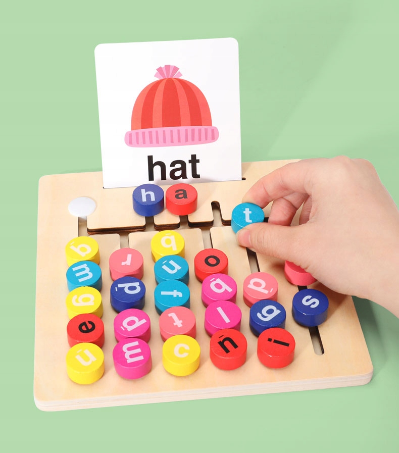 Игра с этой доской поможет вашему ребенку выучить буквы и короткие слова на английском языке. Чтобы образовать заданное слово, ребенок должен «поставить» букву в нужное место и нарисованное слово в нужном порядке. Игра – это не только изучение букв и слов, но и развитие логического мышления, ведь вам нужно правильно переместить заданную букву в нужное место. Ребенок также развивает навыки чтения и просто получает от этого удовольствие.