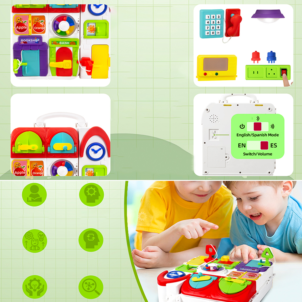 Игрушки для малышей Монтессори с 20 сенсорной деятельностью. Игрушка сочетает в себе музыку, свет, цвета и сенсорные элементы, обеспечивая полную сенсорную стимуляцию. Это помогает разработать слух, распознавание цвета и чувствительность прикосновения, благодаря которому он идеально подходит для обучения детей в раннем детстве и развития моторных навыков.
