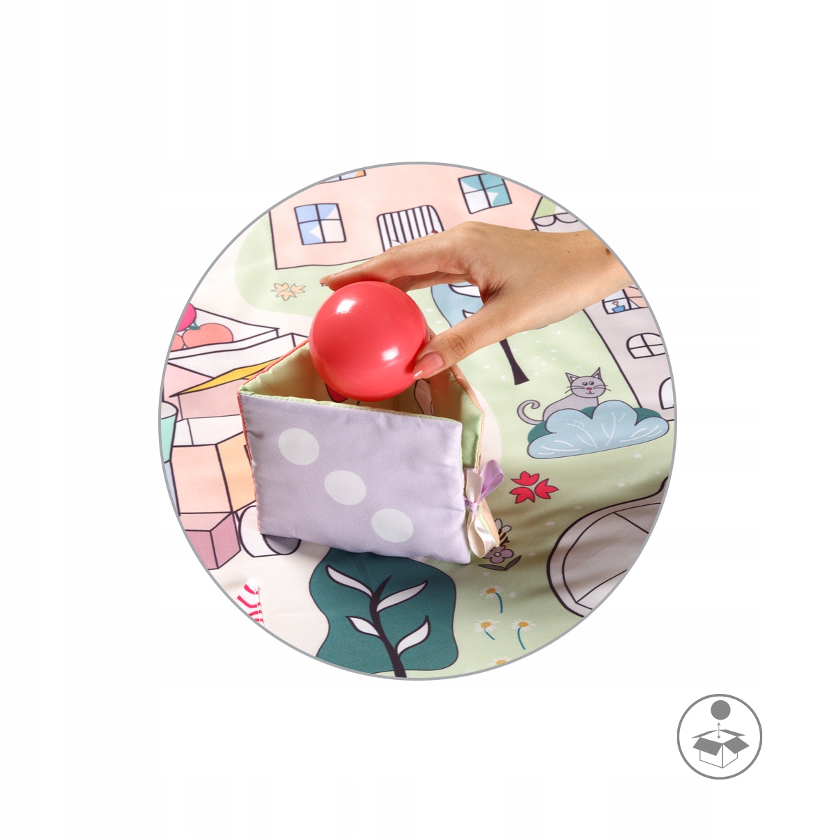 В наборе вы найдете разноцветные шарики. Используйте их, чтобы играть в сухом бассейне и с нашим буклетом. После привязки буклета превращается в корзину, в которую ребенок может бросить их.
