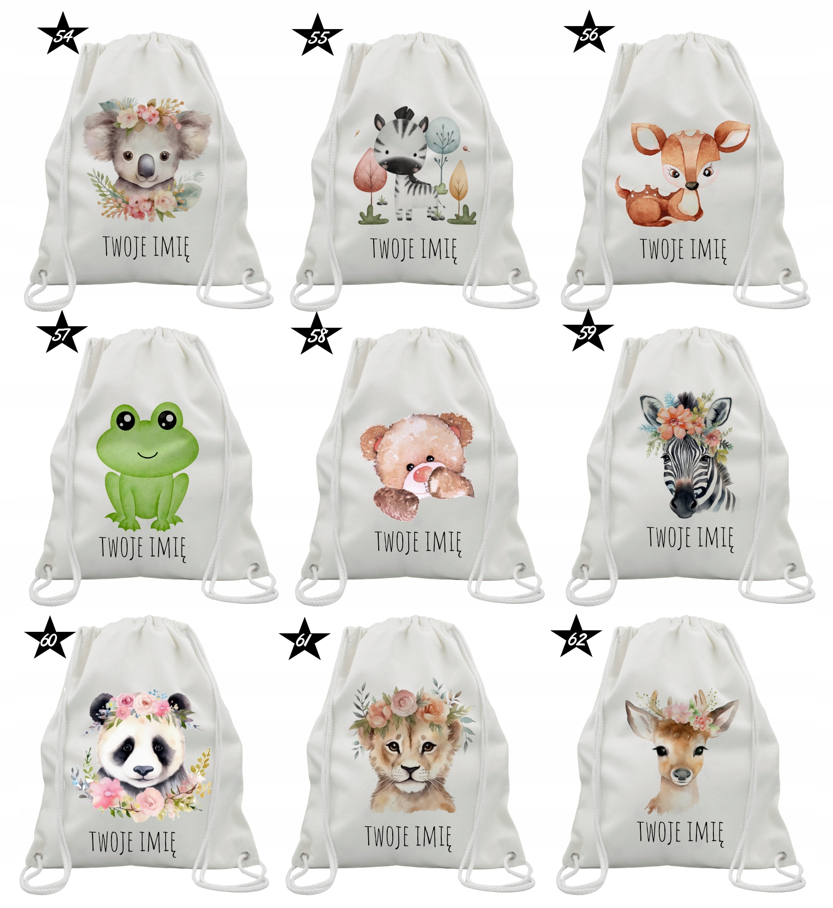 Классический, универсальный сумка, рюкзак в белом/экру с белыми струнами и выделенным вашим печати.