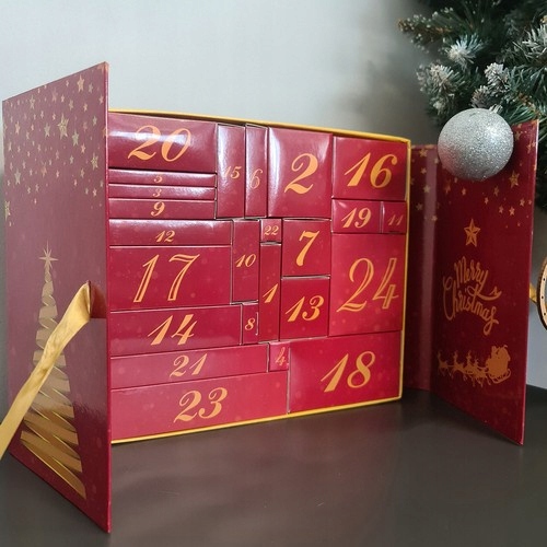 - Современный дизайн - представленный рождественский набор, безусловно, оригинальный и необычный. В упаковке, разработанной нашими графическими дизайнерами, в отдельных коробках есть 24 подарка с номерами и дизайнами праздников . Целое украшено цветовым луком.