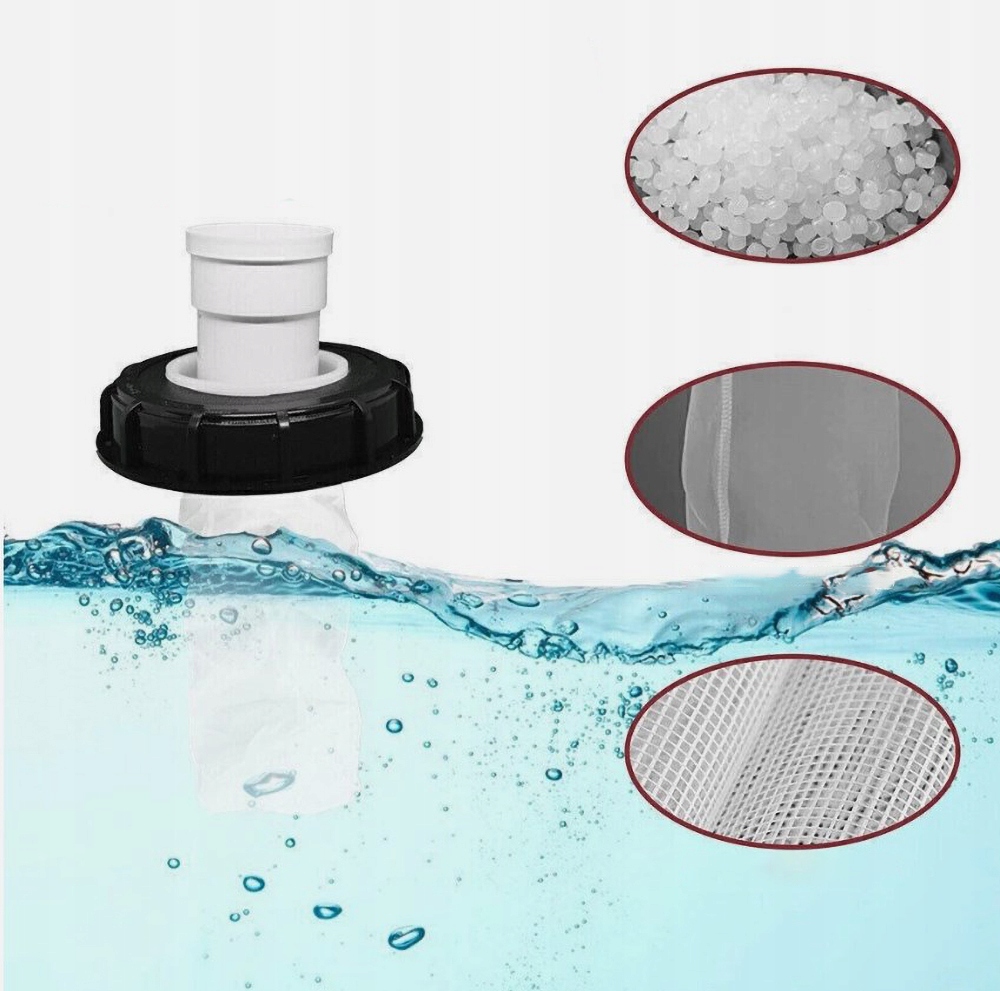 - мешок фильтрации изготовлен из игольчатого войлока, устойчив к разрыву, безопасно для пищи и подходит для повторного использования. В резервуарах для типа дождевой воды IBC (DN150).