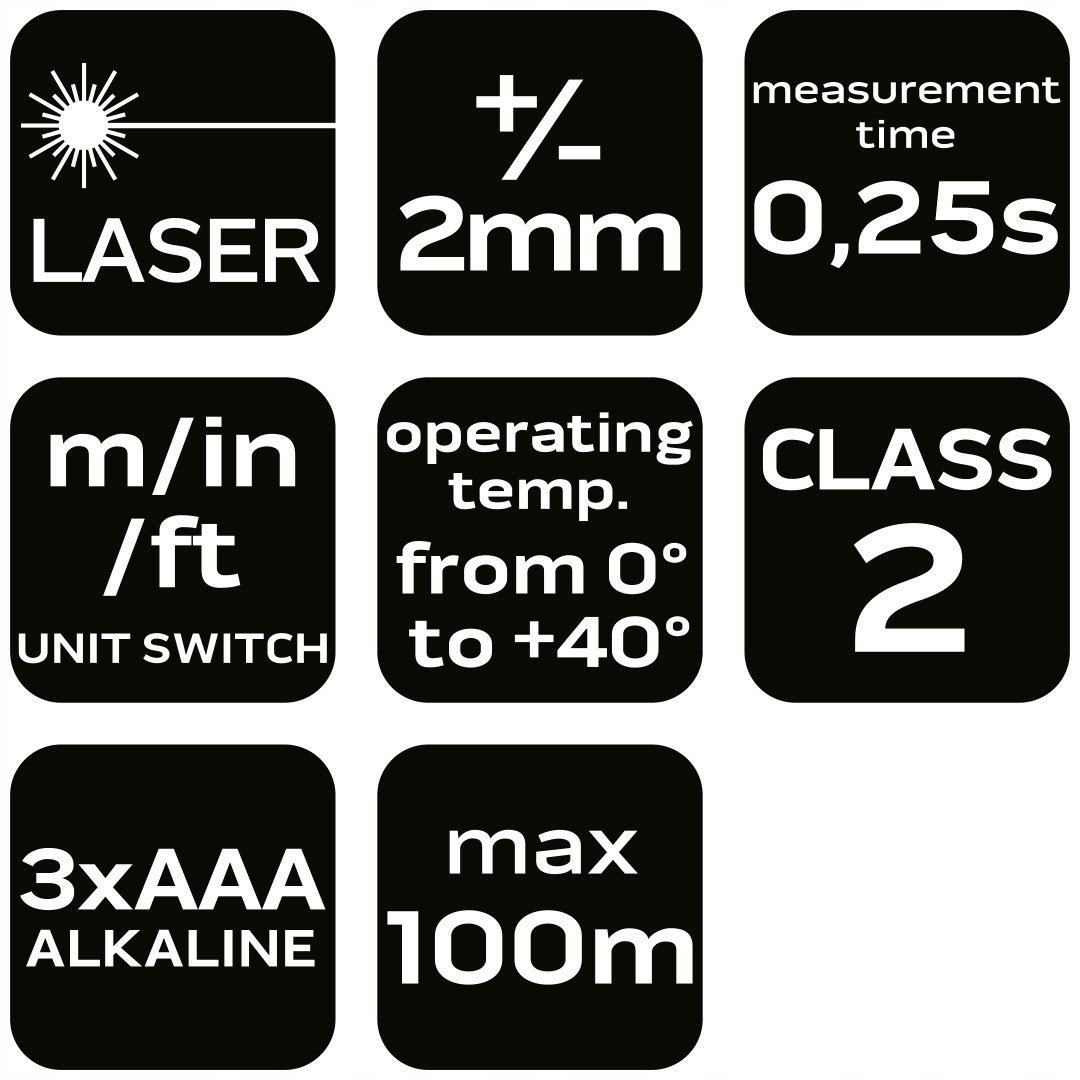 Neo-лазерный дальномер, диапазон 100 м, IP54, 75-207
