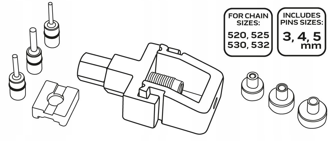 Инструменты понадобятся в мастерских и мото-, вело- и автосервисах. Мы рекомендуем подпилить заклепки перед разрывом цепи. Это обеспечит бесперебойную работу устройства в течение многих лет.