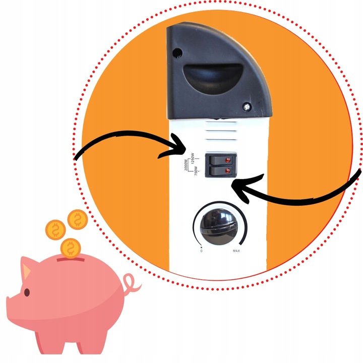 ➡ Переключатель нагревательного питания: 750 Вт/1250 Вт/2000 Вт