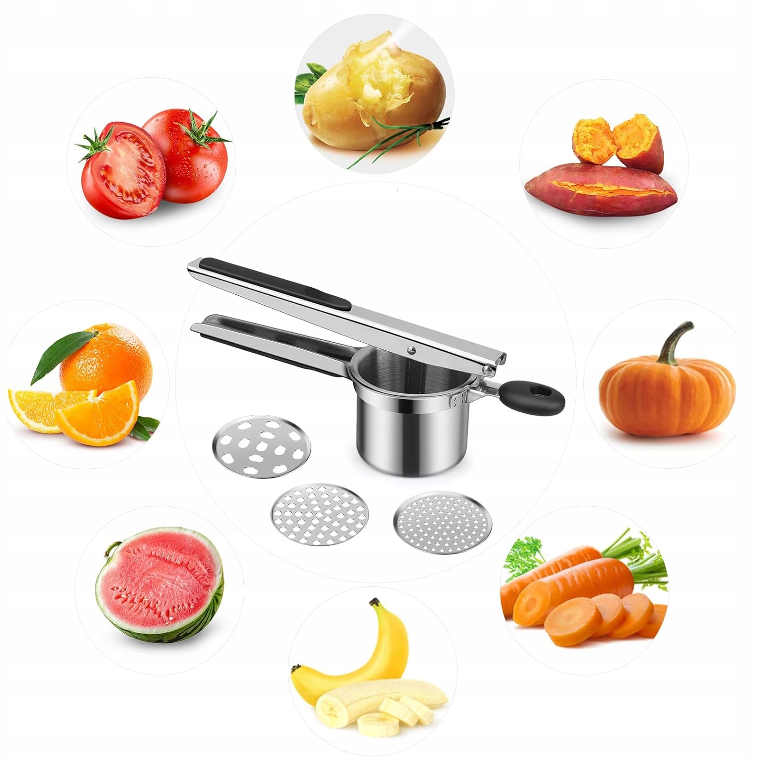 - Наша картофельная пестика имеет 3 сменного сита, маленькое, среднее и толстое, для разных уровней пюре Li> подносы сито доступны с отверстиями с диаметром 2 мм, 4 мм и 12 мм. Различные овощи. , не сокрушительный силиконовый ручка, которая позволяет легко сжимать, не взвешивая запястья