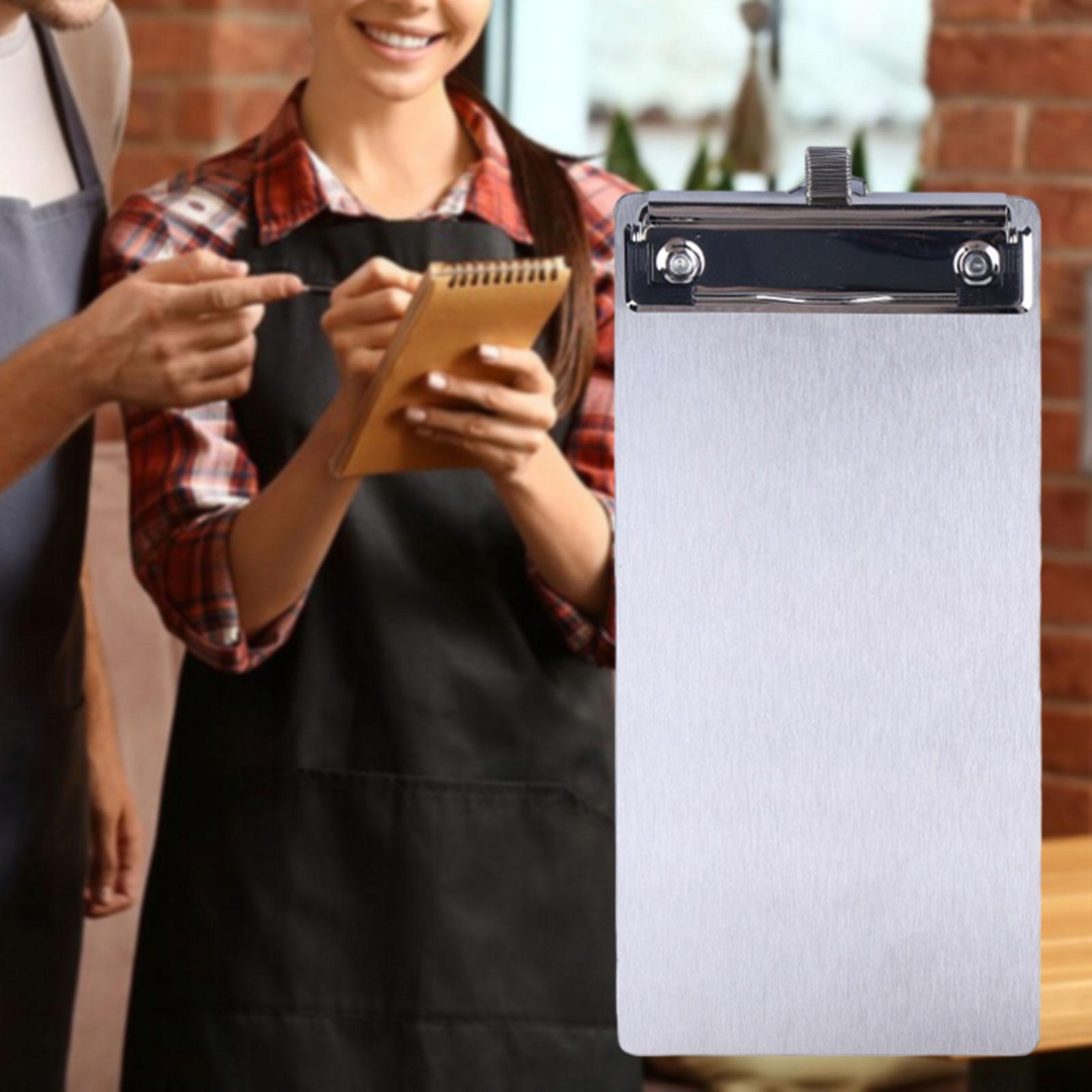 : Меню изготовлено из нержавеющей стали, простой и модной, с гладкой поверхностью, долговечностью и предназначенным для длительного использования. Металлический зажим, легко соблюдать список чеков, счетов, меню и т. Д. С помощью ручки и скрытого отверстия для хранения, легко хранить.