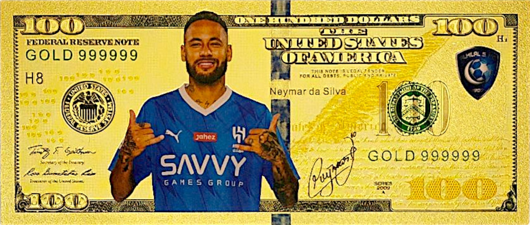 Неймар -младший позолочен 24K PVC Collector's Banknote - Limited Edition