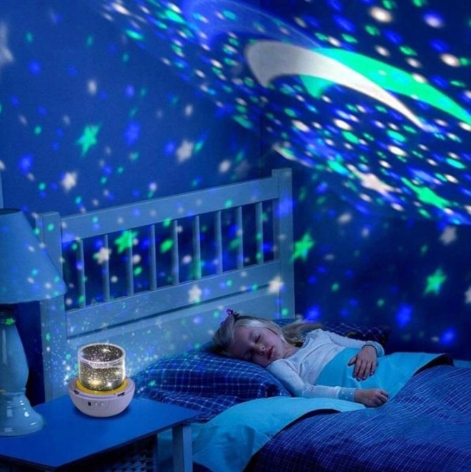 - Шесть дополнительных фильмов: с шестью различными темами: созвездия, Солнечная система, звездное небо, день рождения, океан, луна. б>. Эта красивая сцена будет проецироваться на потолок или стену, создавая романтическую и сказочную атмосферу. Наслаждайтесь звездным небом в своей комнате всей семьей.