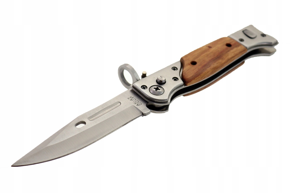 Складной нож, стиль которого напоминает штык знаменитого автомата Калашникова.