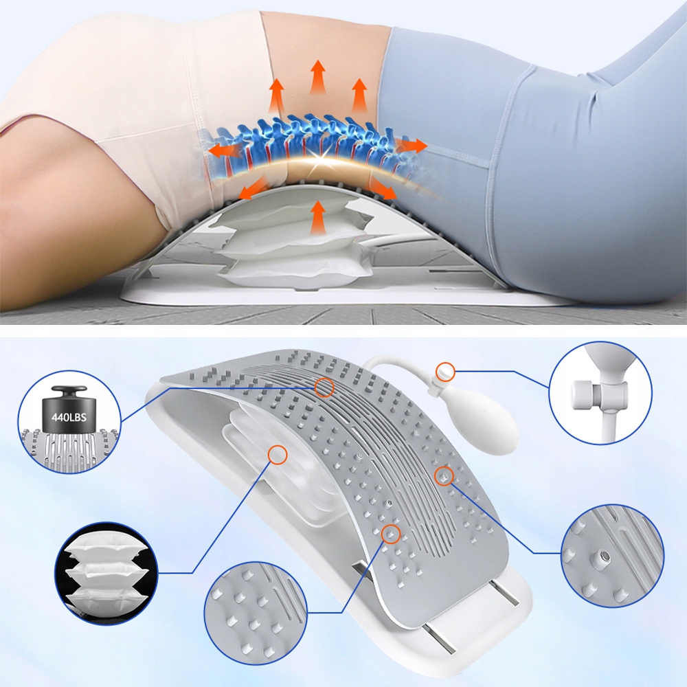 Эндом с ограниченными уровнями, вы можете легко управлять этим задним растяжением одной рукой, просто сжимайте ручку растяжения позвоночника или нажмите кнопку под ручкой, чтобы быстро отпустить воздух, отрегулировать удобную арку лука, идеально отрегулируйте мышцы задней части ваших нужд. Вернуться и улучшить отношение.