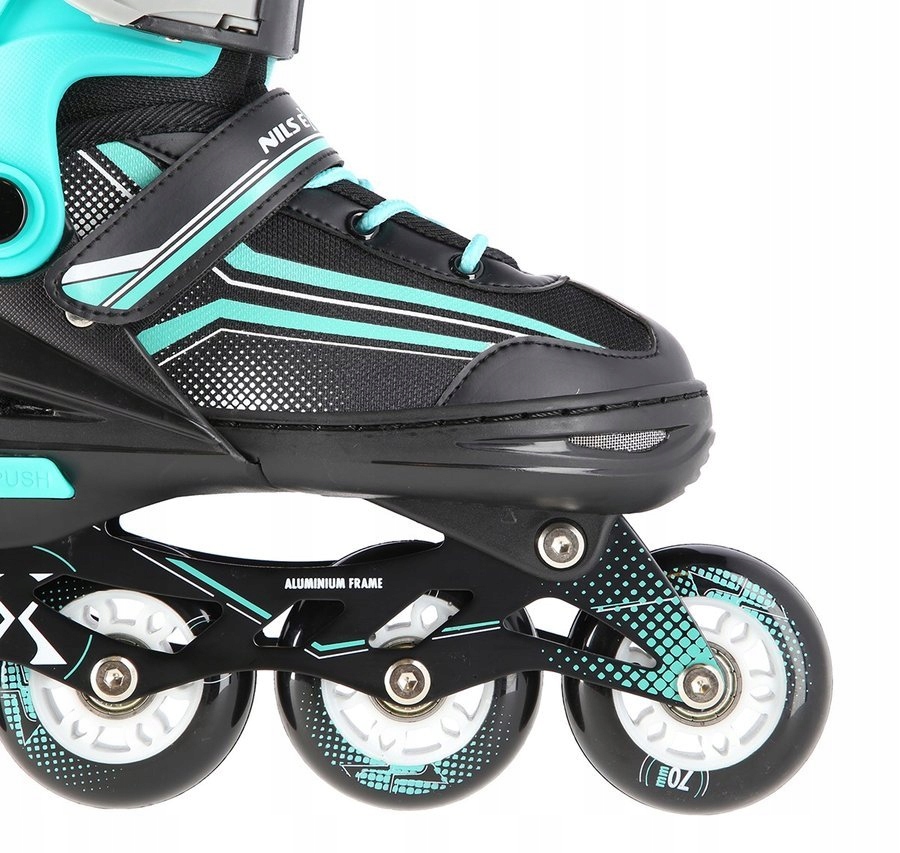 Роликовые коньки NH18190 — это истинное удовольствие от катания. Роликовые коньки оснащены специальными алюминиевыми полозьями и тормозом, что обеспечивает безопасность при катании. В свою очередь, колеса и подшипники класса ABEC7 позволяют снизить сопротивление качению, то есть ускорить езду.