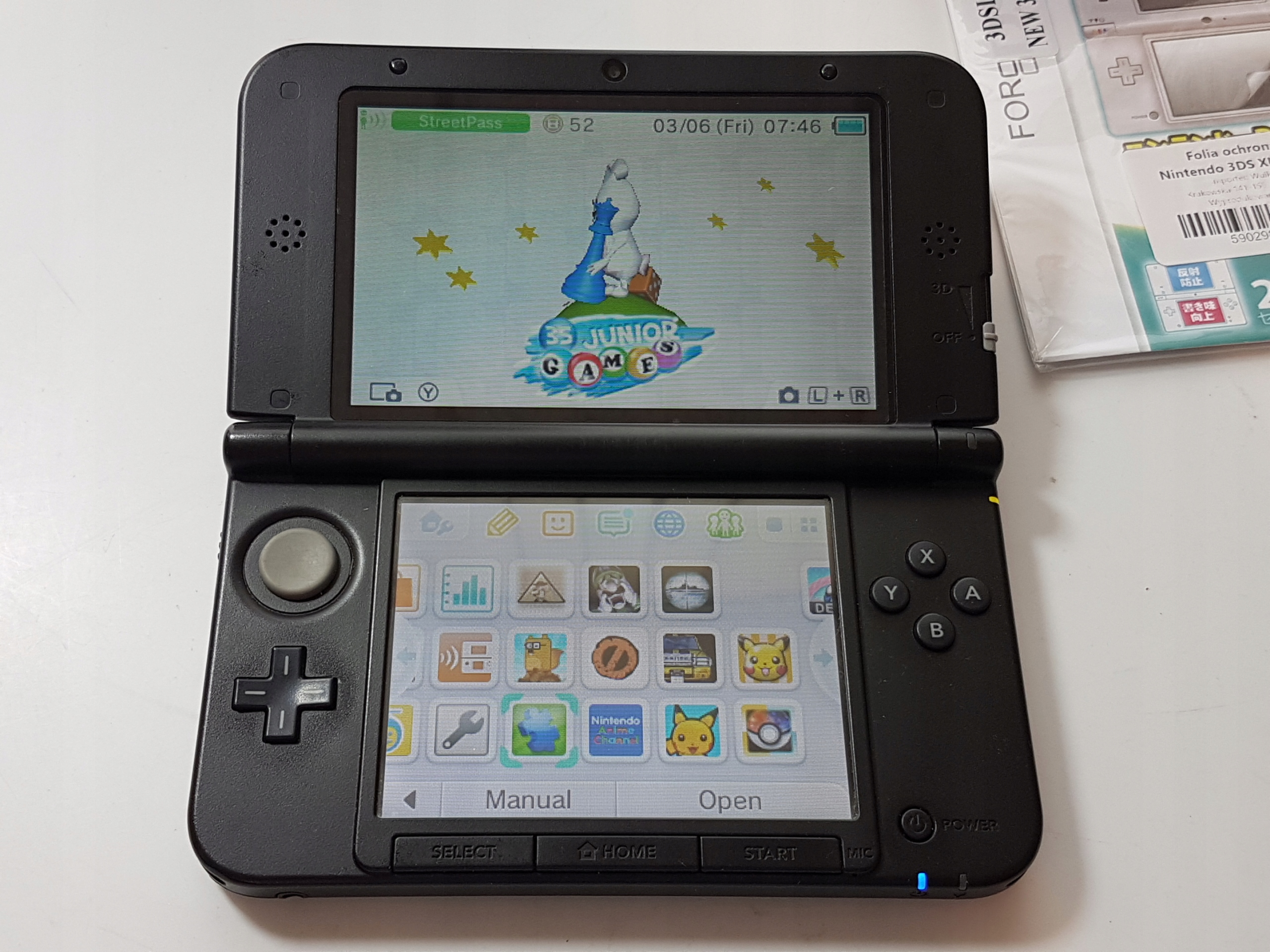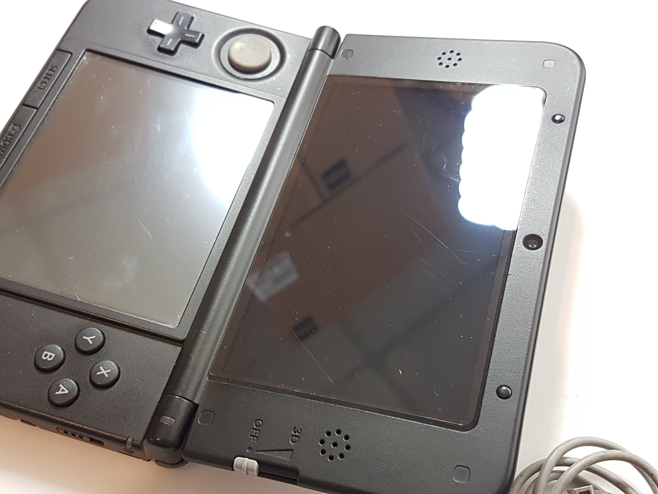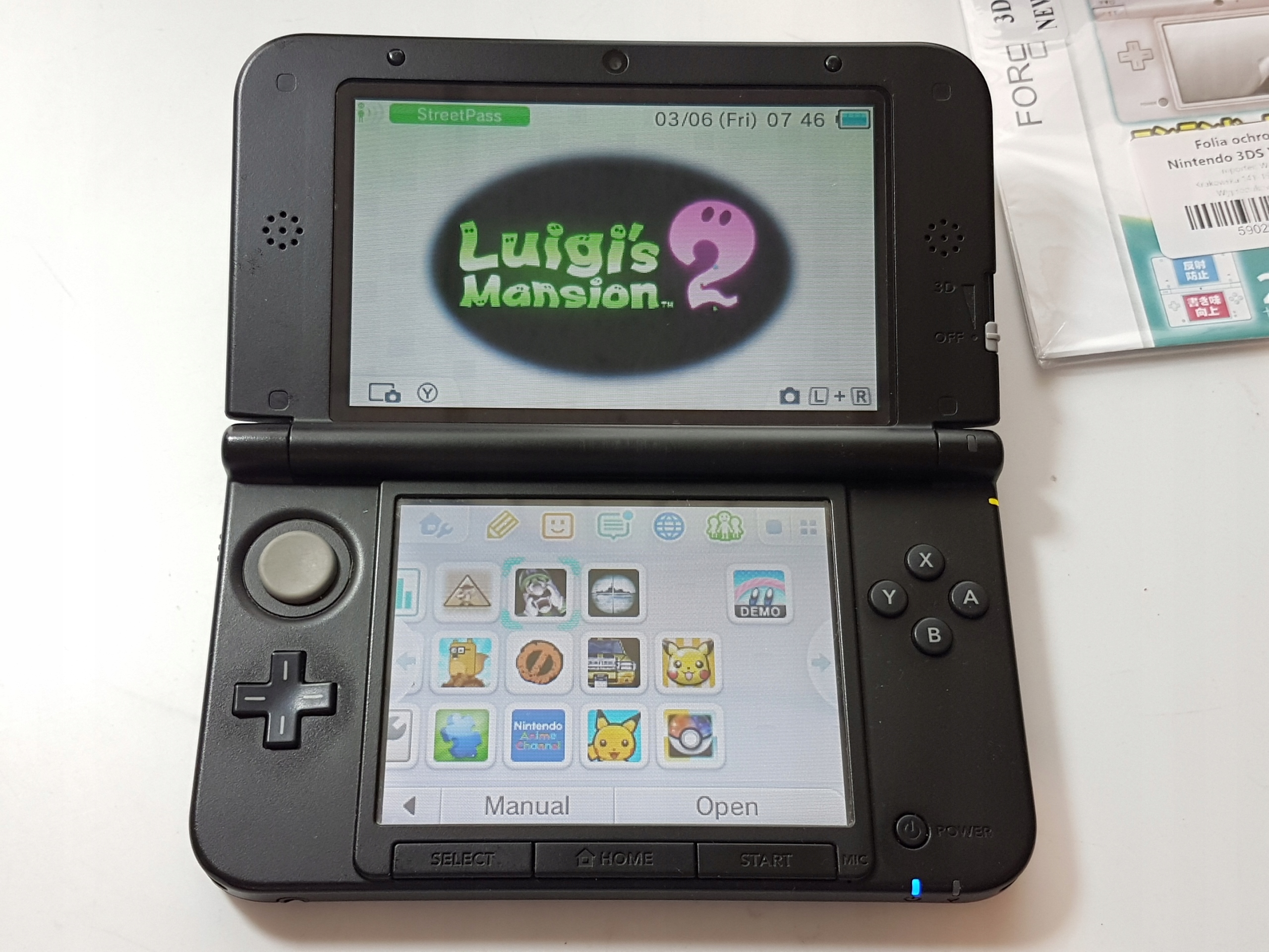 Нижний экран имеет тонкие царапины, но после нанесения защитной пленки они почти не видны. Это не видно во время игры. Мы добавляем дополнительный набор фольги в нижний и верхний экран. Может, это будет полезно :)