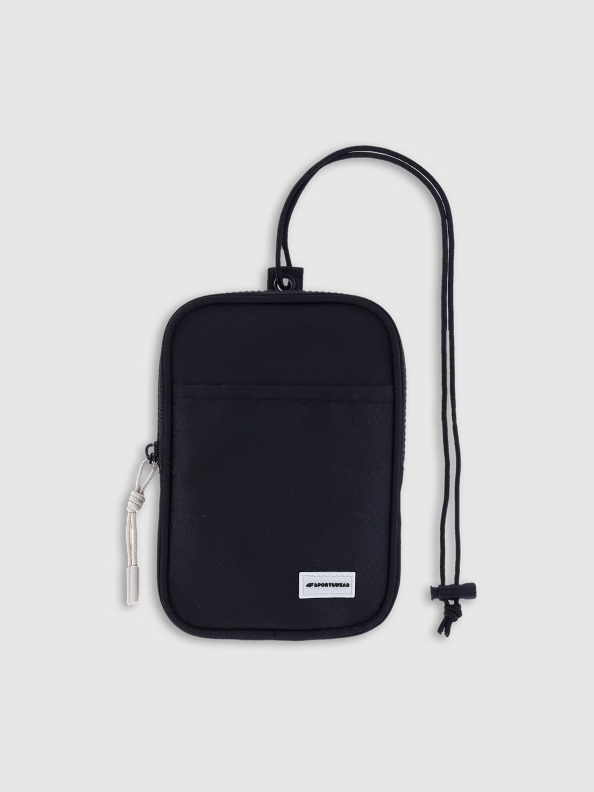 Документы с пакетом по телефону и шею, оснащенные струнами с помощью пробки. Основной карман закреплен с одним блокировкой. Фронт - это карман без прикрепления.
