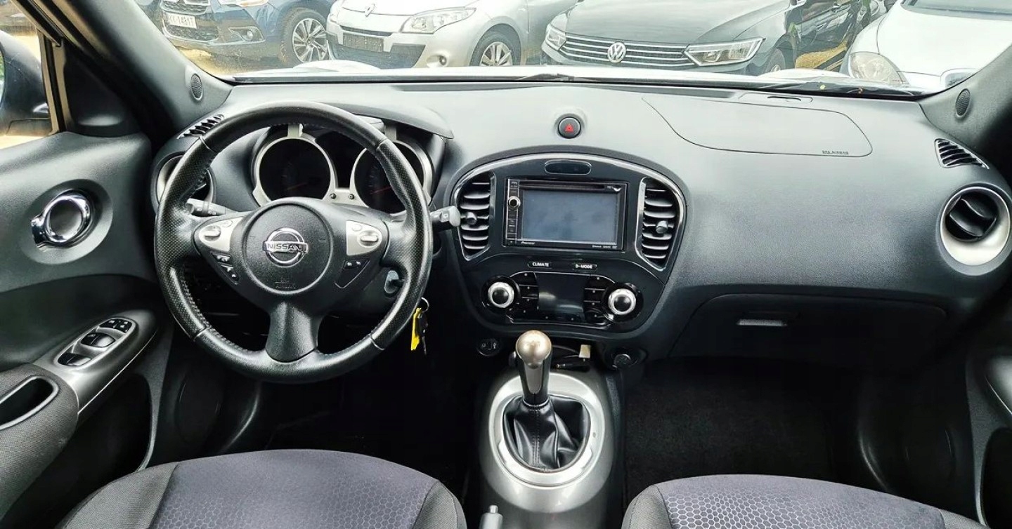 Nissan Juke с надежным, экономичным и неразрушимым бензиновым двигателем 1.6 с ручной коробкой передач с кондиционером.