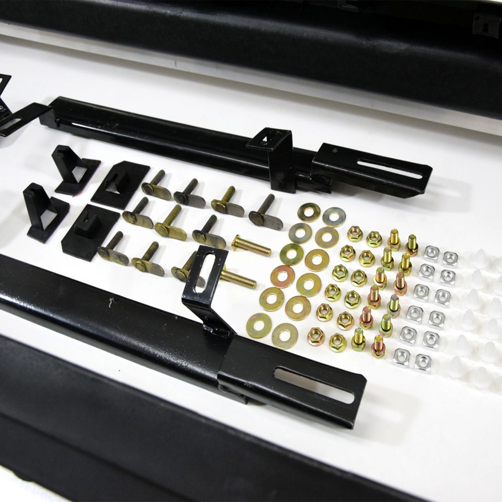 В автомобиле не нужно сверлить никаких отверстий, все кронштейны крепления монтируются в технологические отверстия автомобиля.