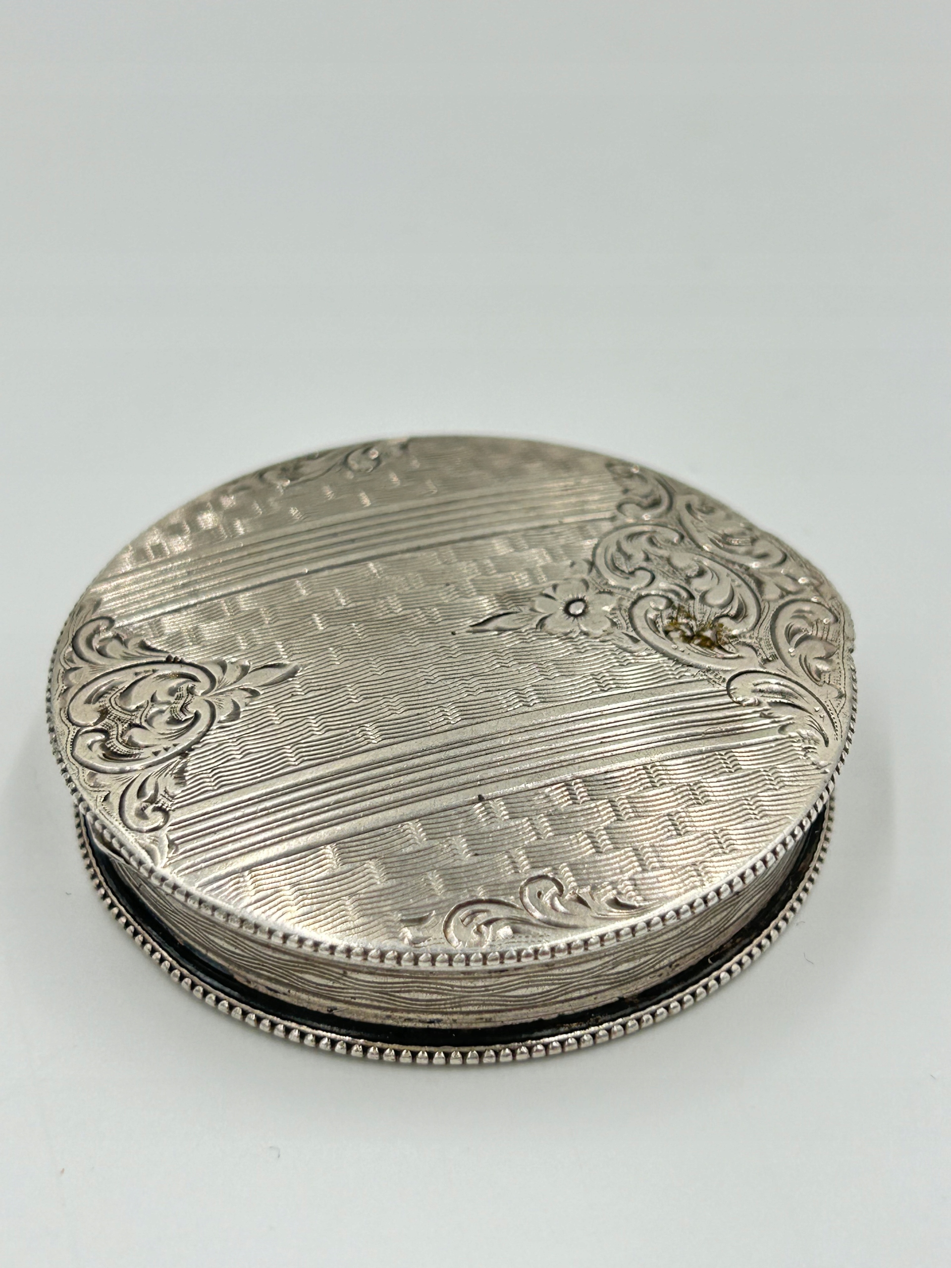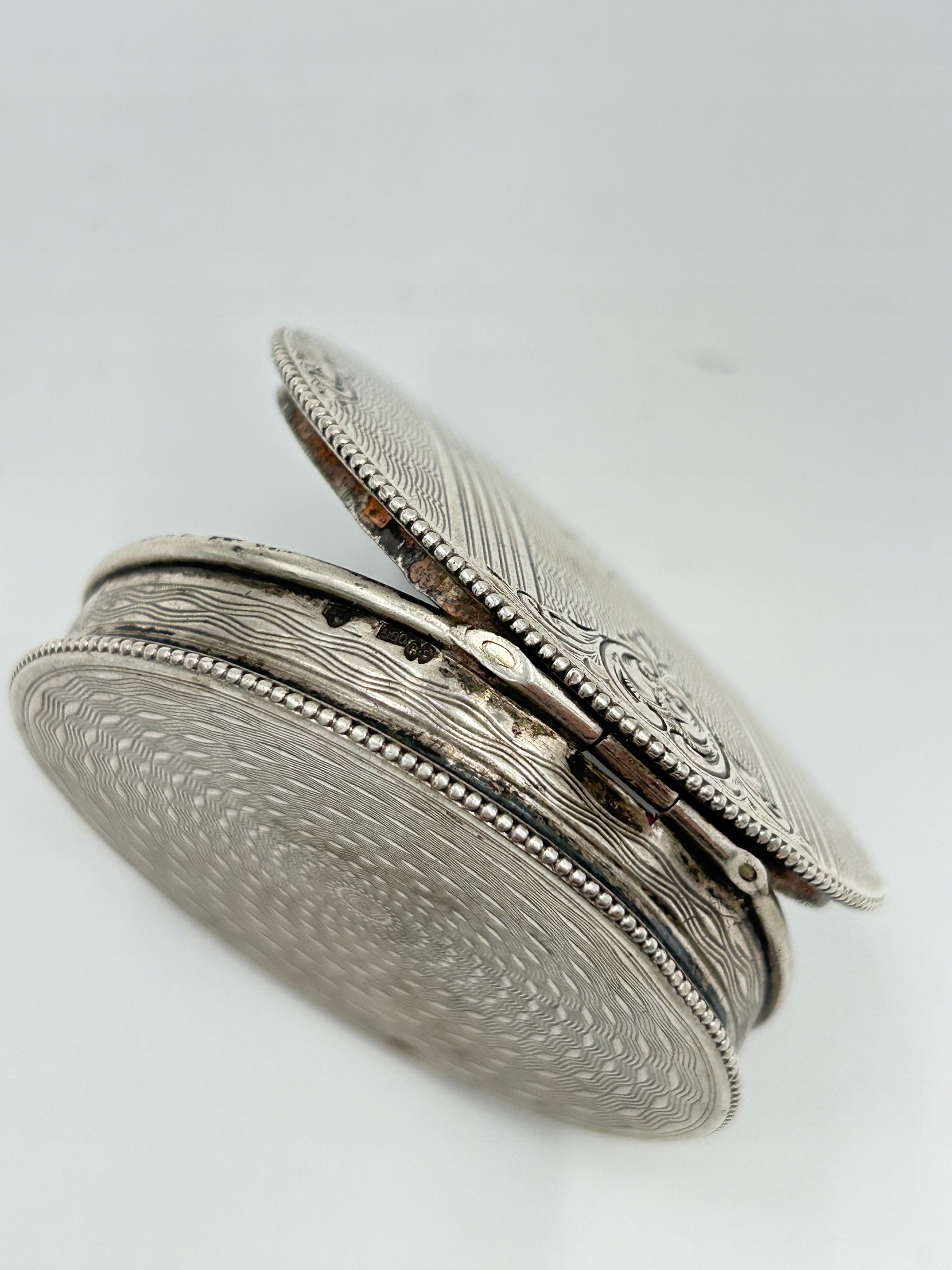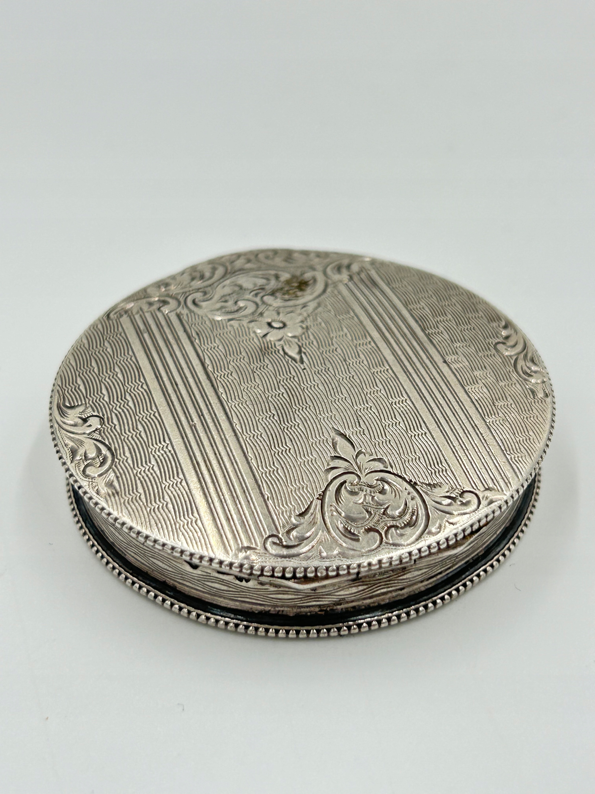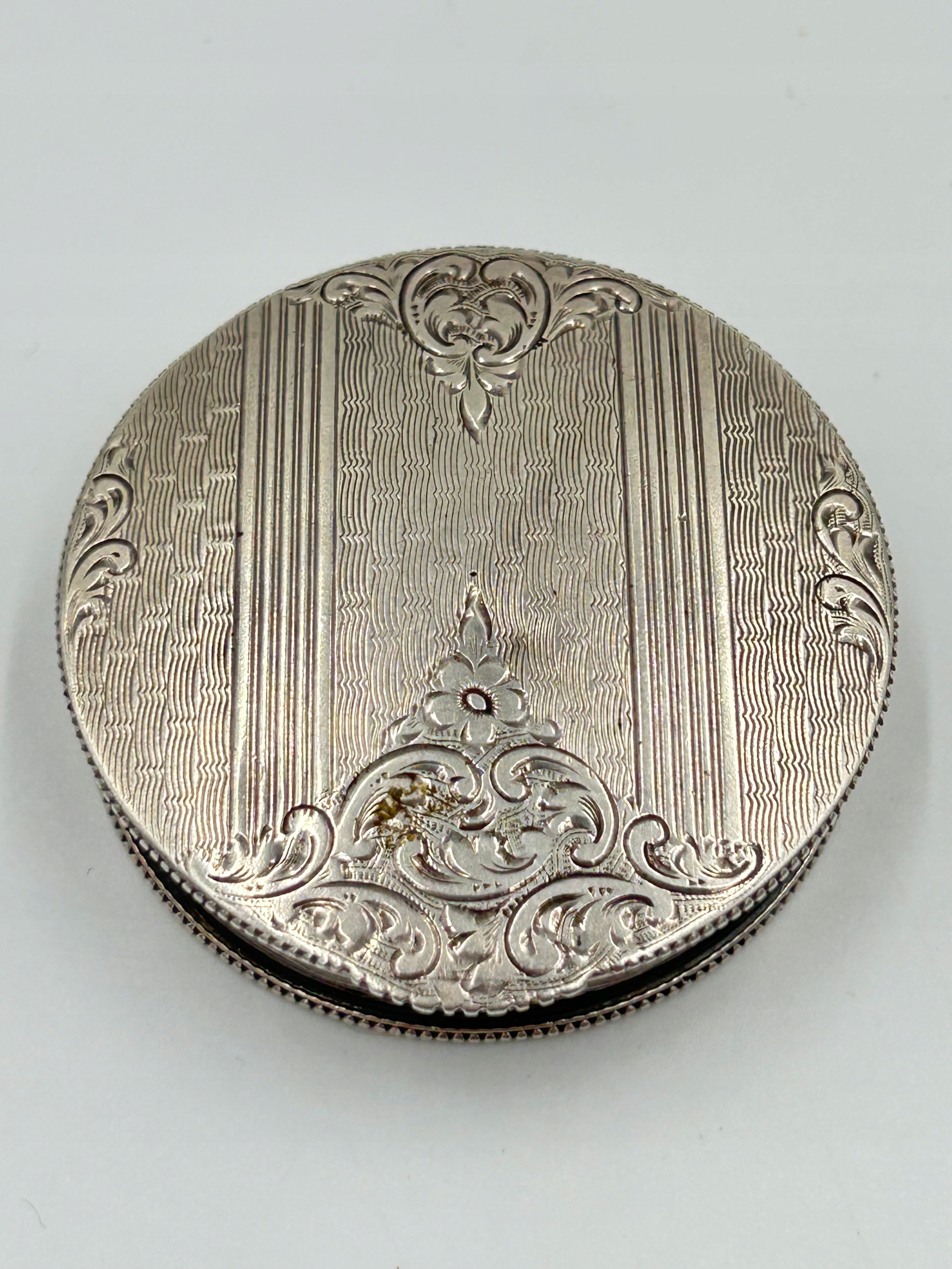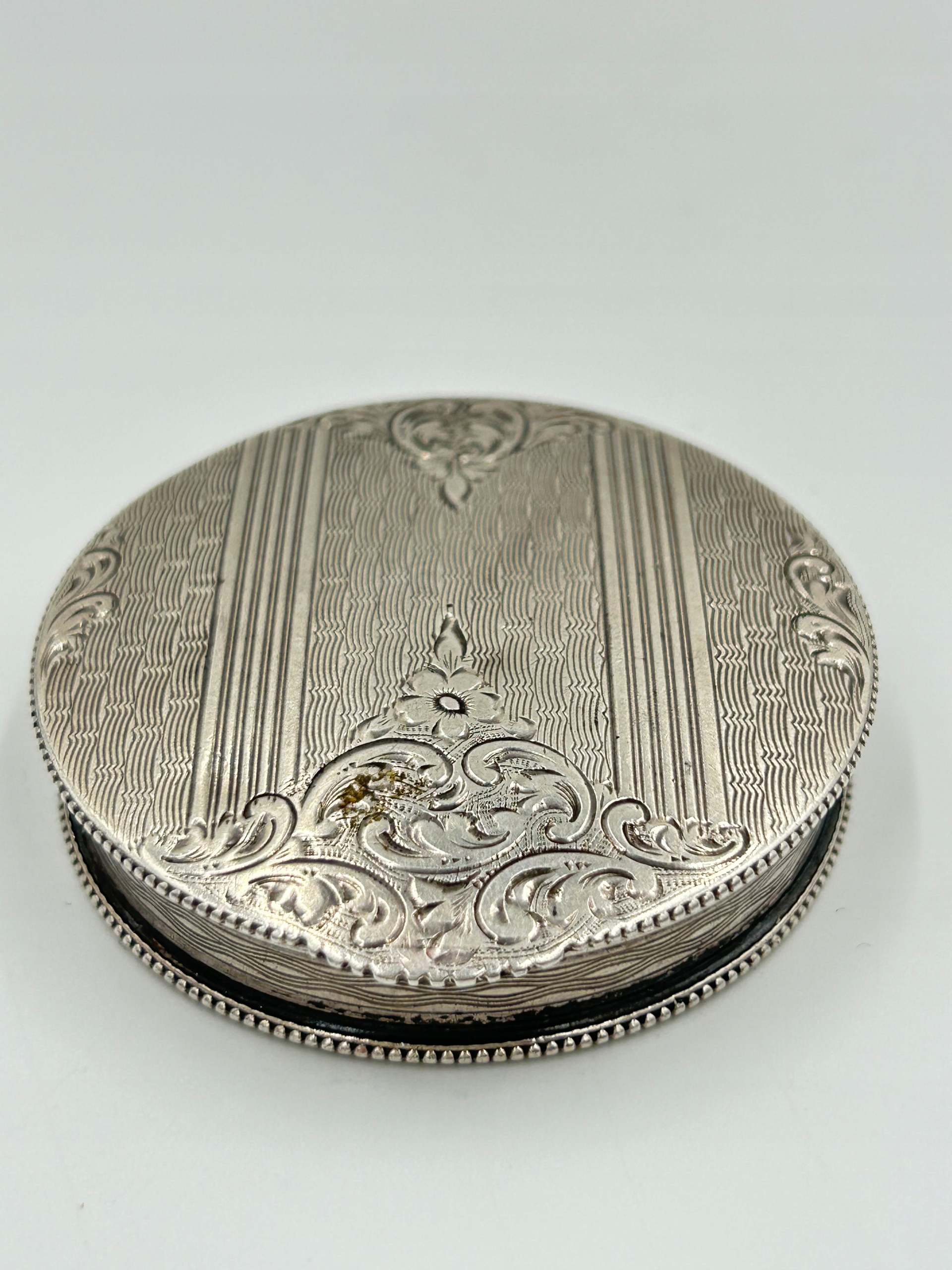 Представляю Вам декоративную круглую коробочку для табакерок и таблеток из серебра 900 пробы. Уникальный декоративный элемент для людей, ценящих неподвластную времени элегантность.