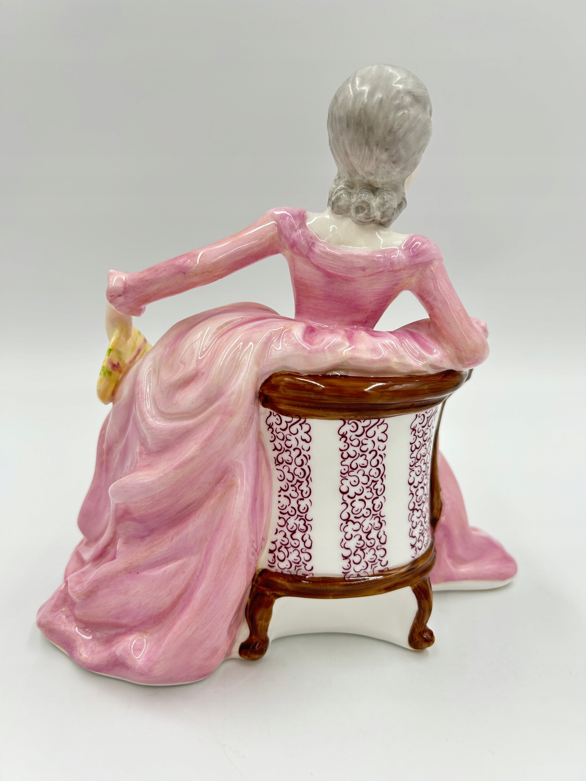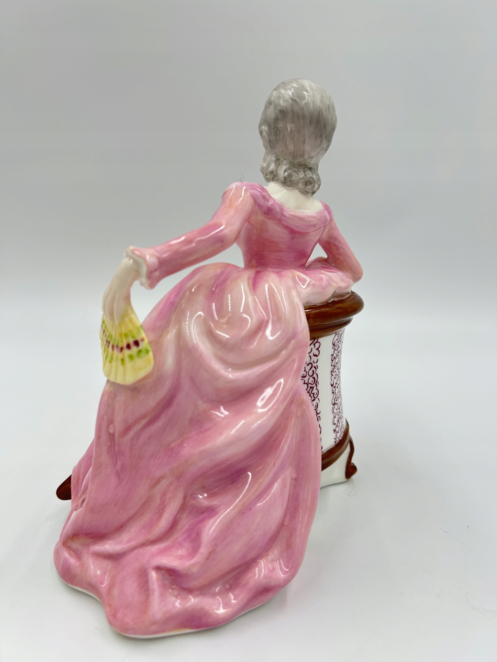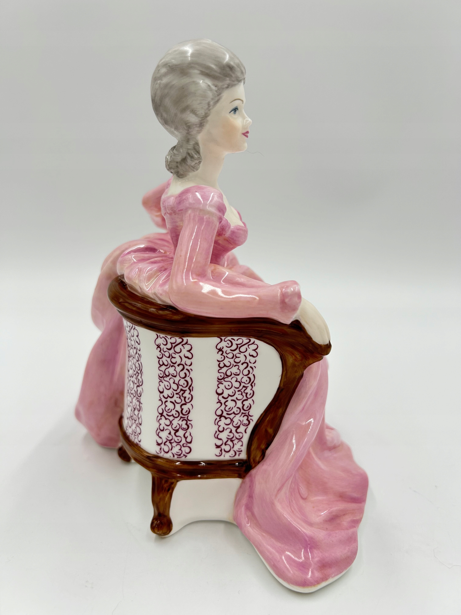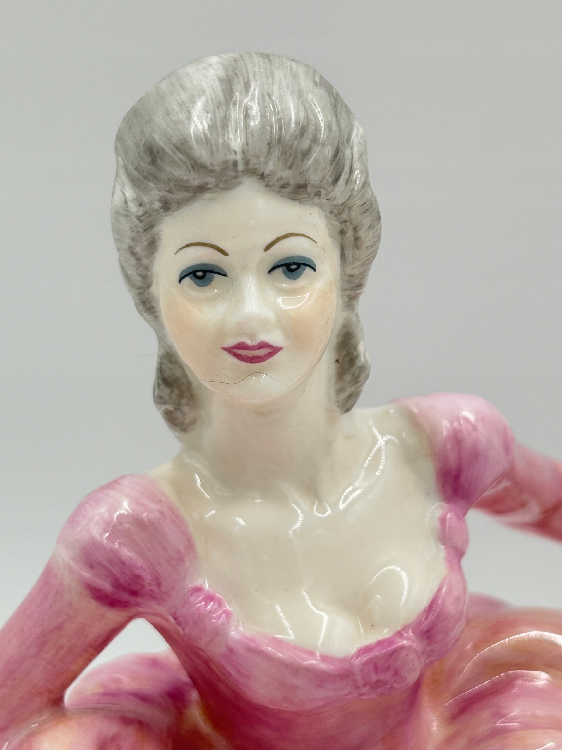 Представляю вам красивую статуэтку фабрики COALPORT из коллекции LADIES OF FASHION - Полли, изображающую очаровательную даму в длинном розовом платье, держащую в руке желтый веер.