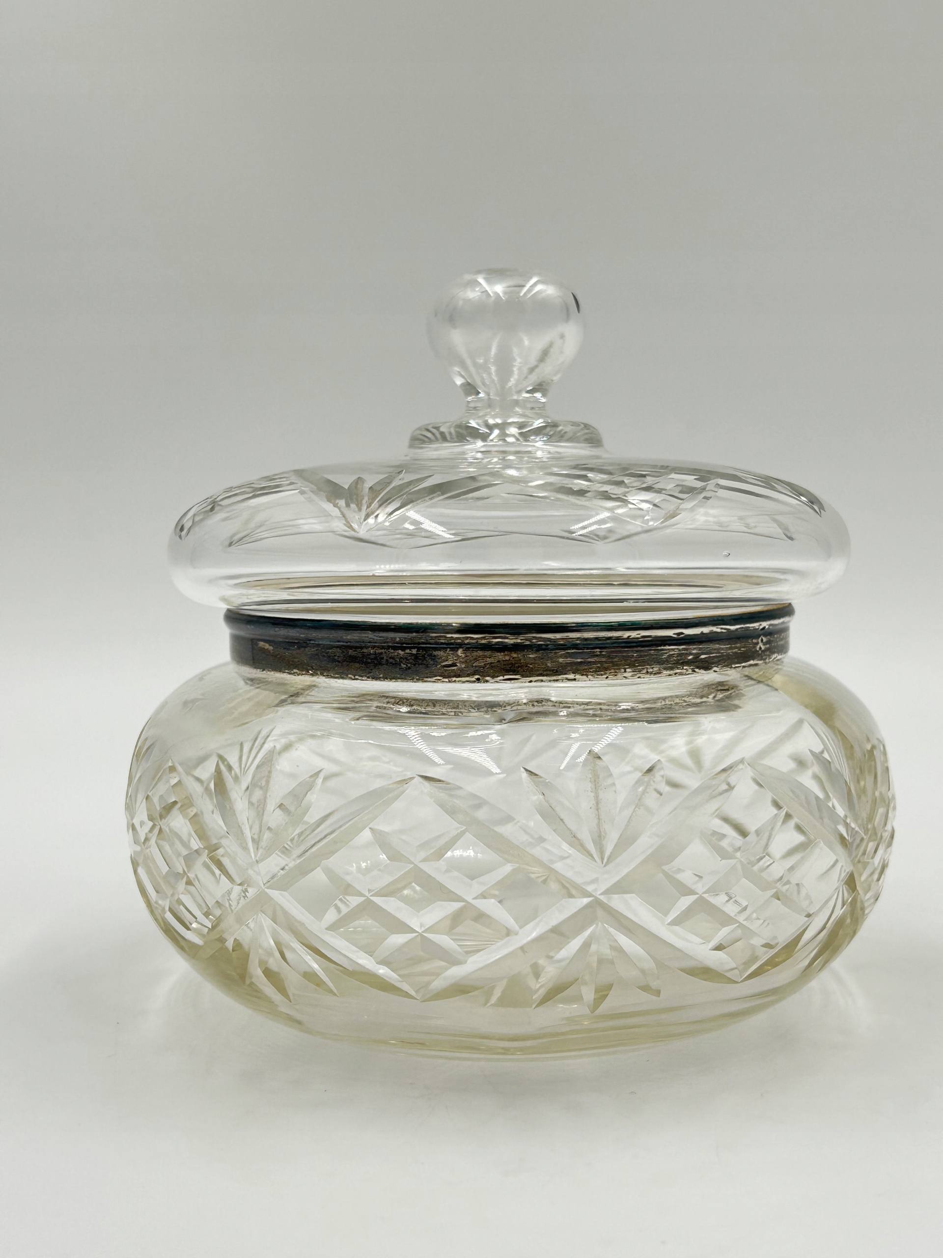 Объект продажи - элегантная хрустальная шоколадная коробка, украшенная глубоким рисунком, шея пригонки обода, сделанной из серебра. Стильный декоративный предмет, уникальный подарок для человека, который ценит вневременную элегантность.