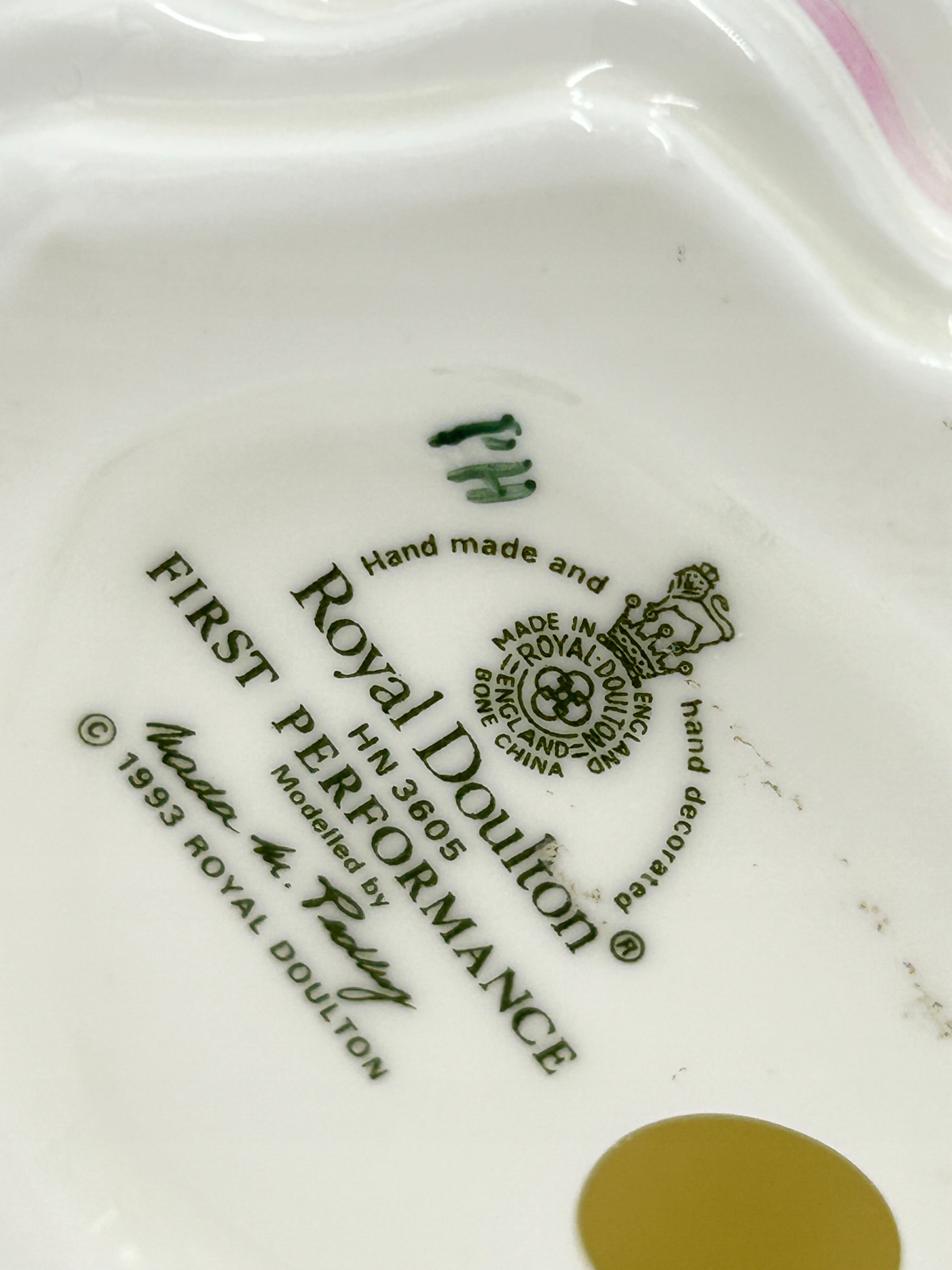 Предмет продажи – очаровательная статуэтка производства ROYAL DOULTON – ПЕРВОЕ ПЕРФОРМАНС. Красивая, уникальная статуэтка станет очаровательным предметом на полке любителя английского фарфора.