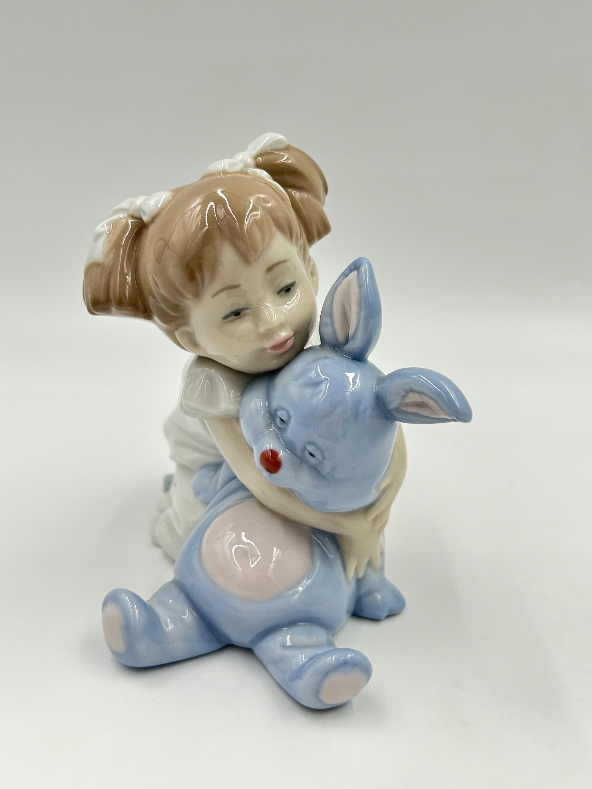 Предмет продажи — очаровательная статуэтка испанского производства Lladro Nao — девочка с плюшевым синим кроликом.