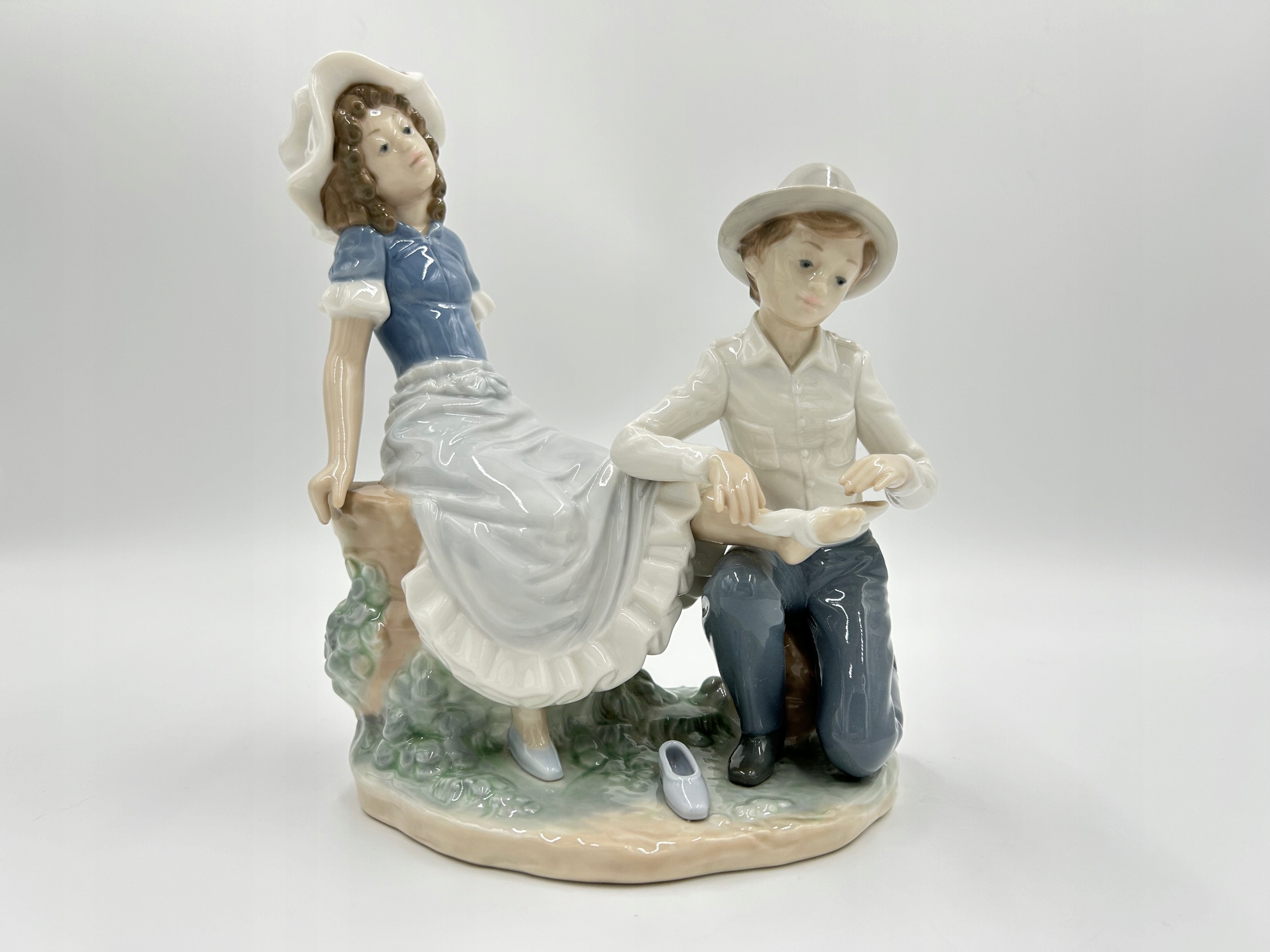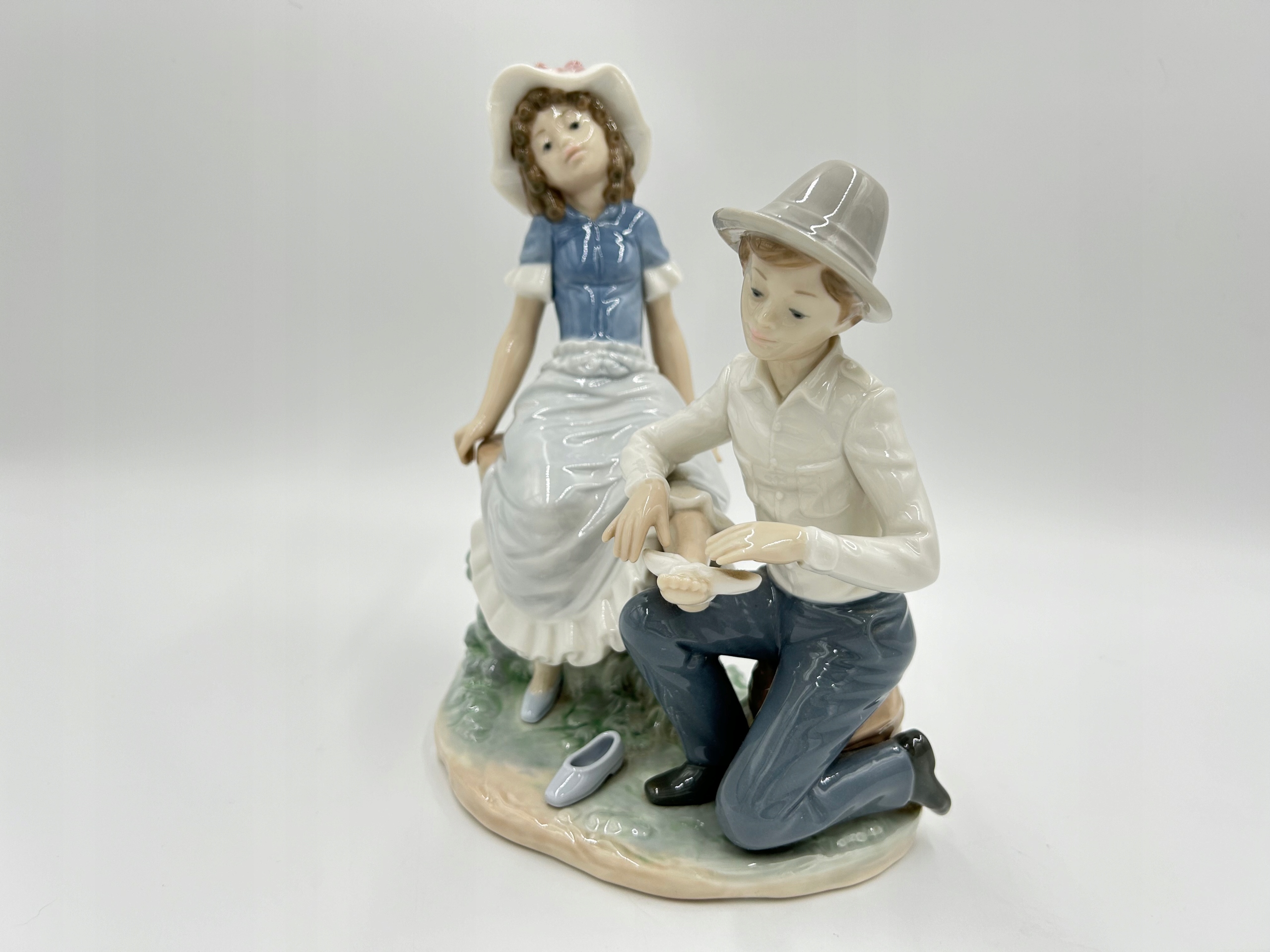 Объект продажи - очаровательная статуэтка испанского производства lladro nao - нежный момент, изображающий мальчика, дающего девочку ногу.