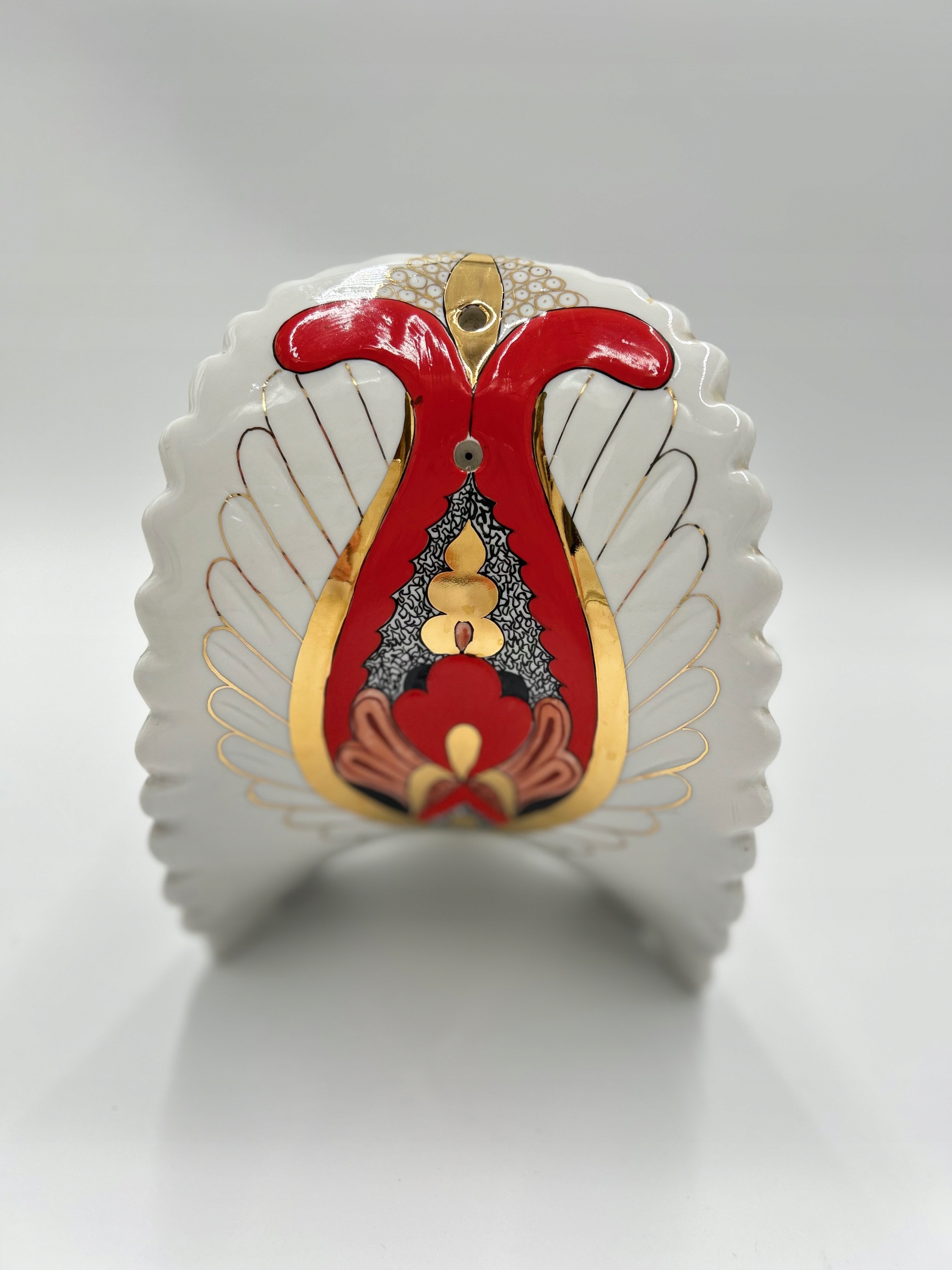 Изготовлен из высококачественного фарфора, расписан вручную. Красивое декоративное блюдо. Без пробки.
