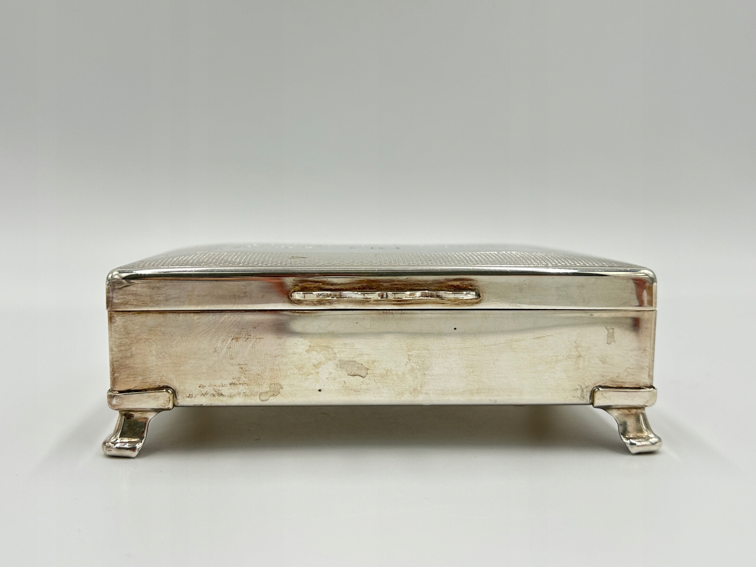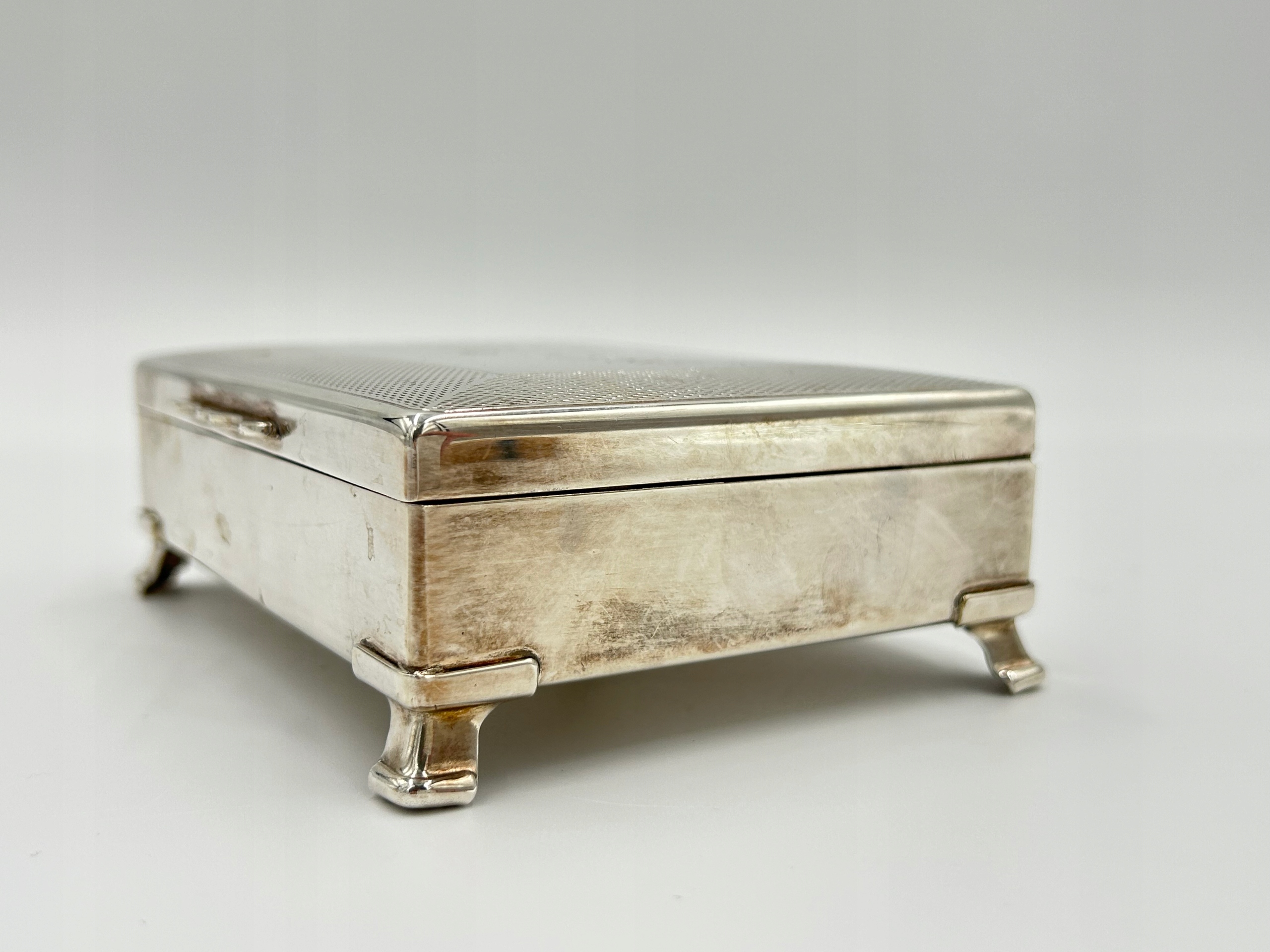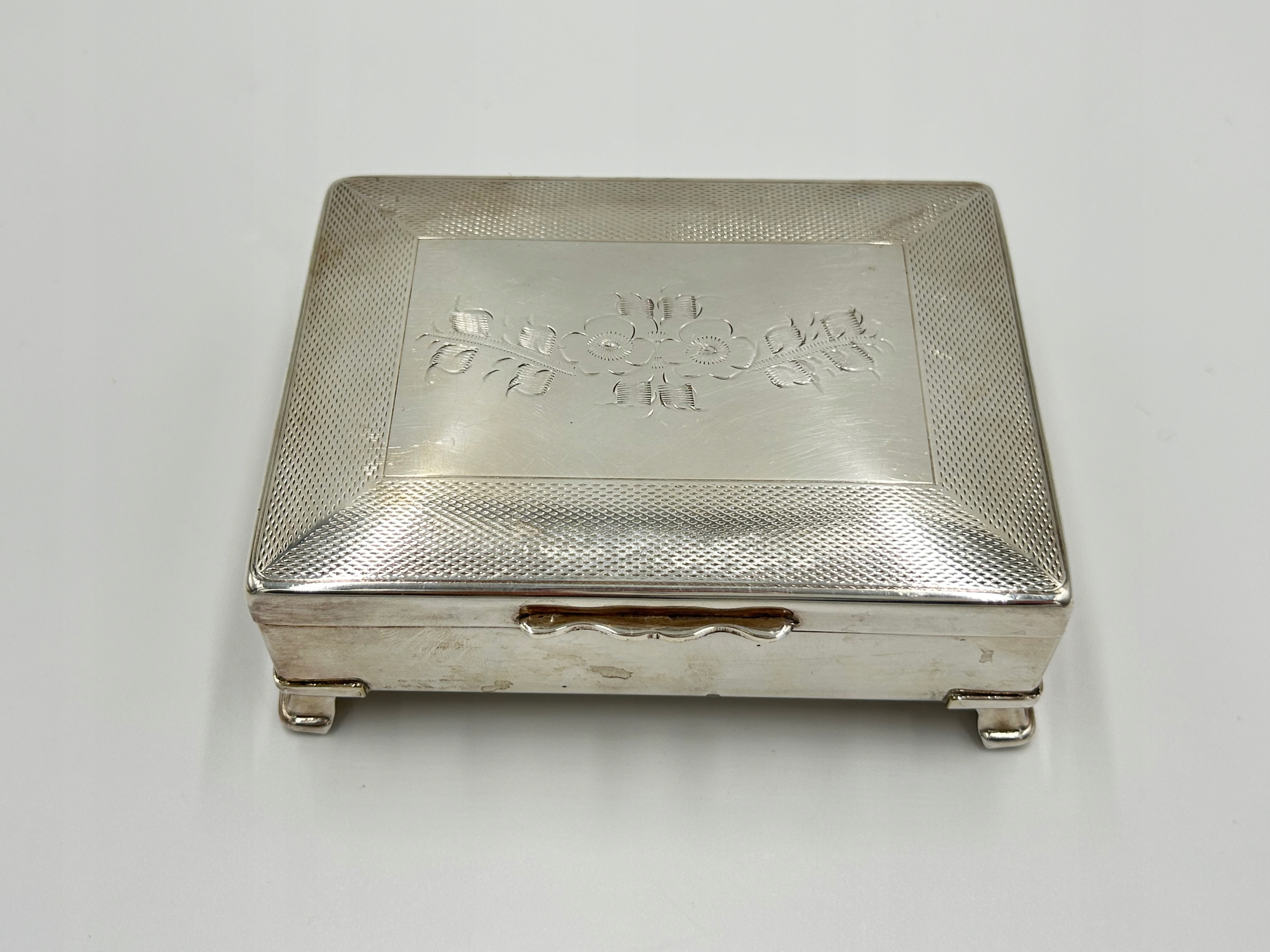 Я представляю вам уникальную коробку для нуво для сигар. Изготовлен из серебряной латуни. Интерьер, выровненная деревянной подкладкой, покрывает шарнирными. Декоративное покрытие - гравированные цветы. Коробка остается на четырех ногах.