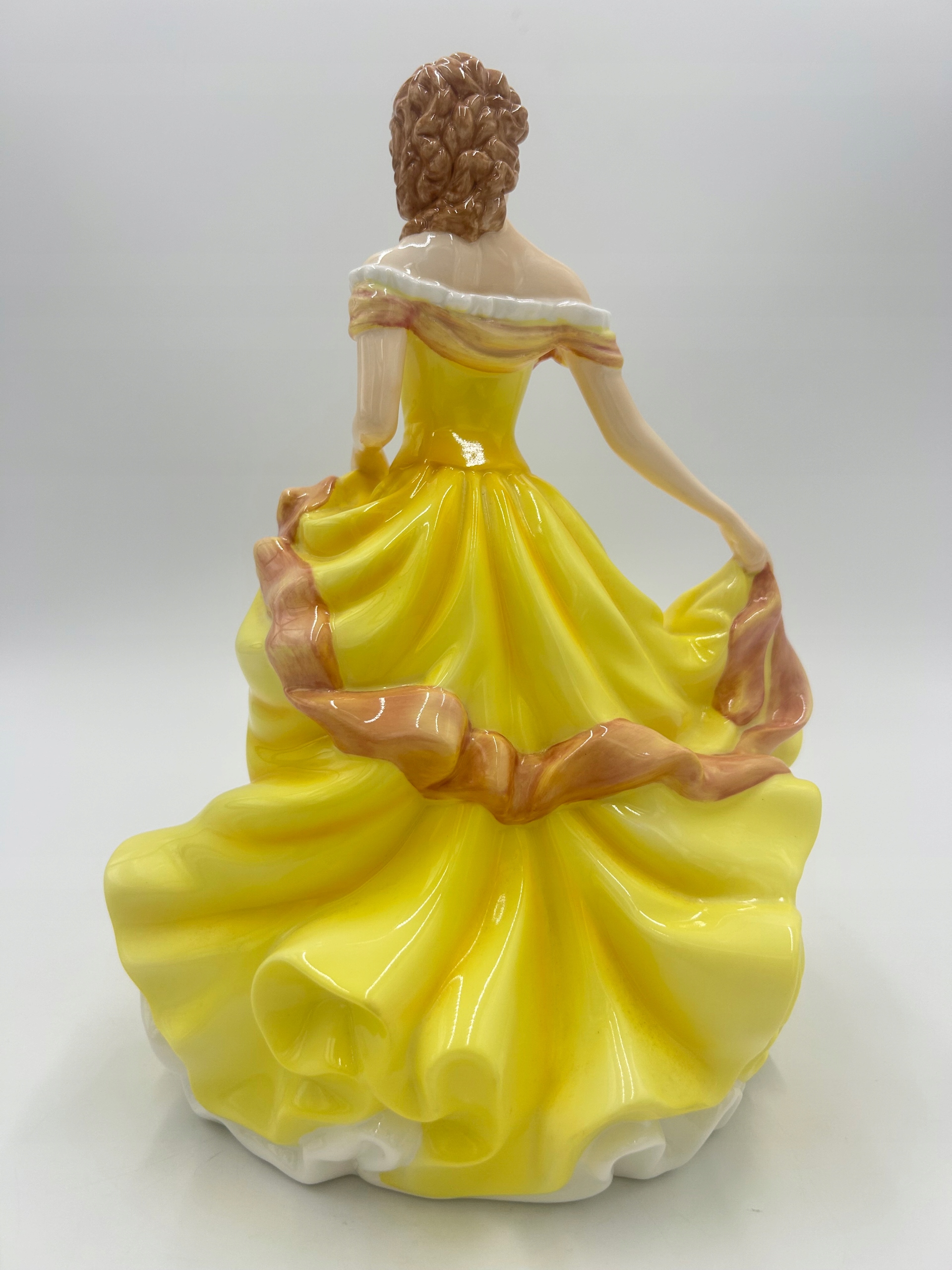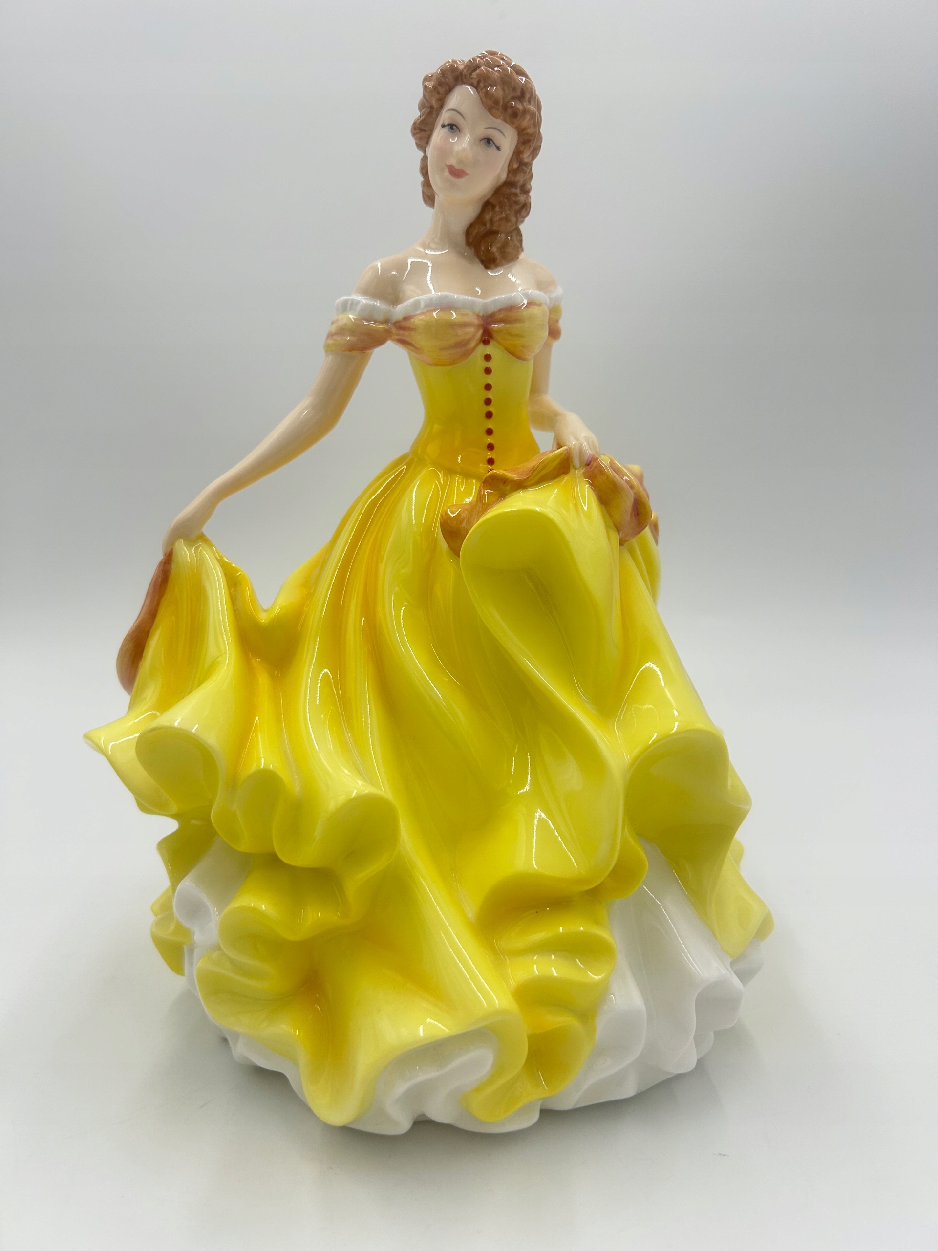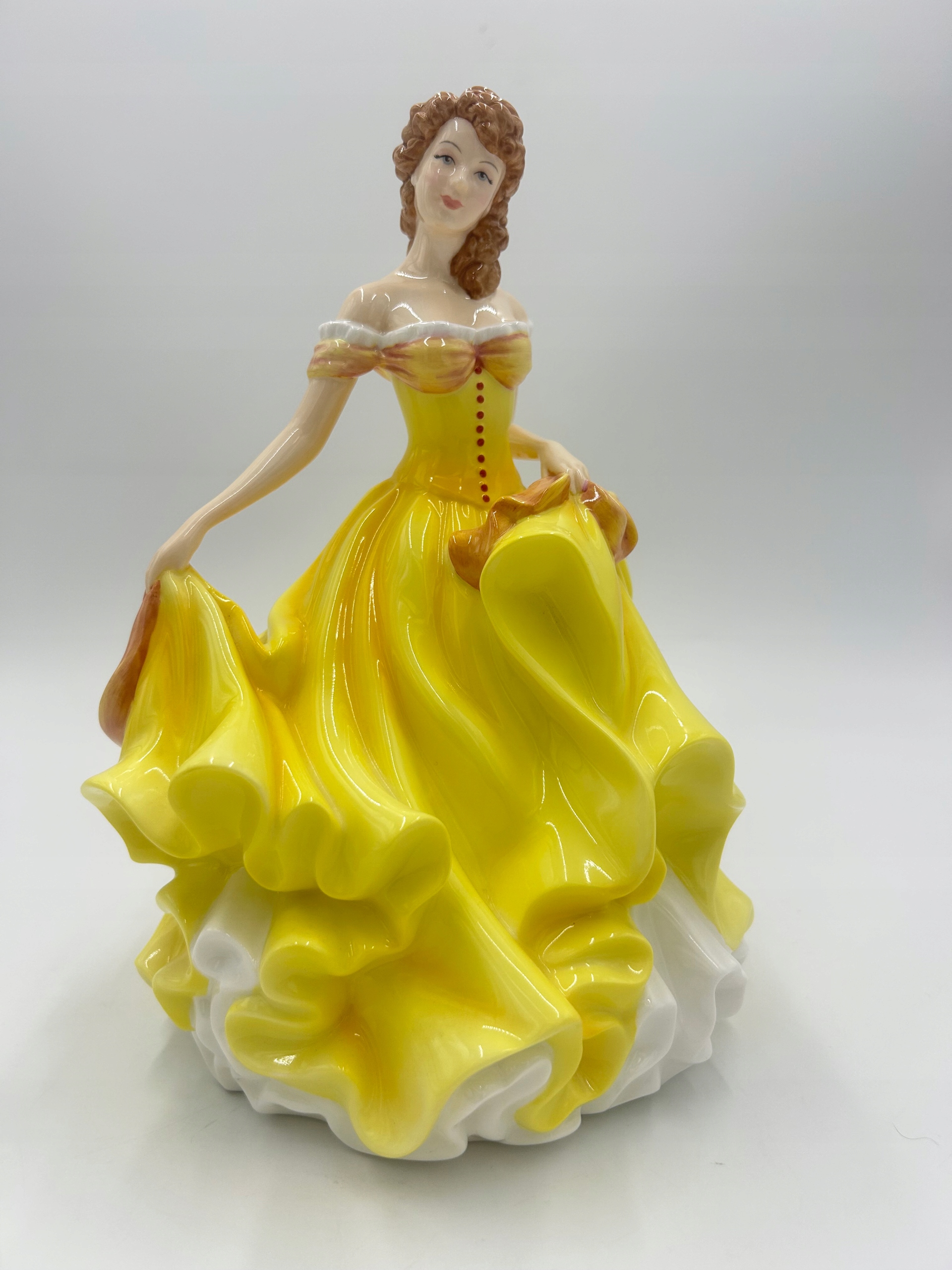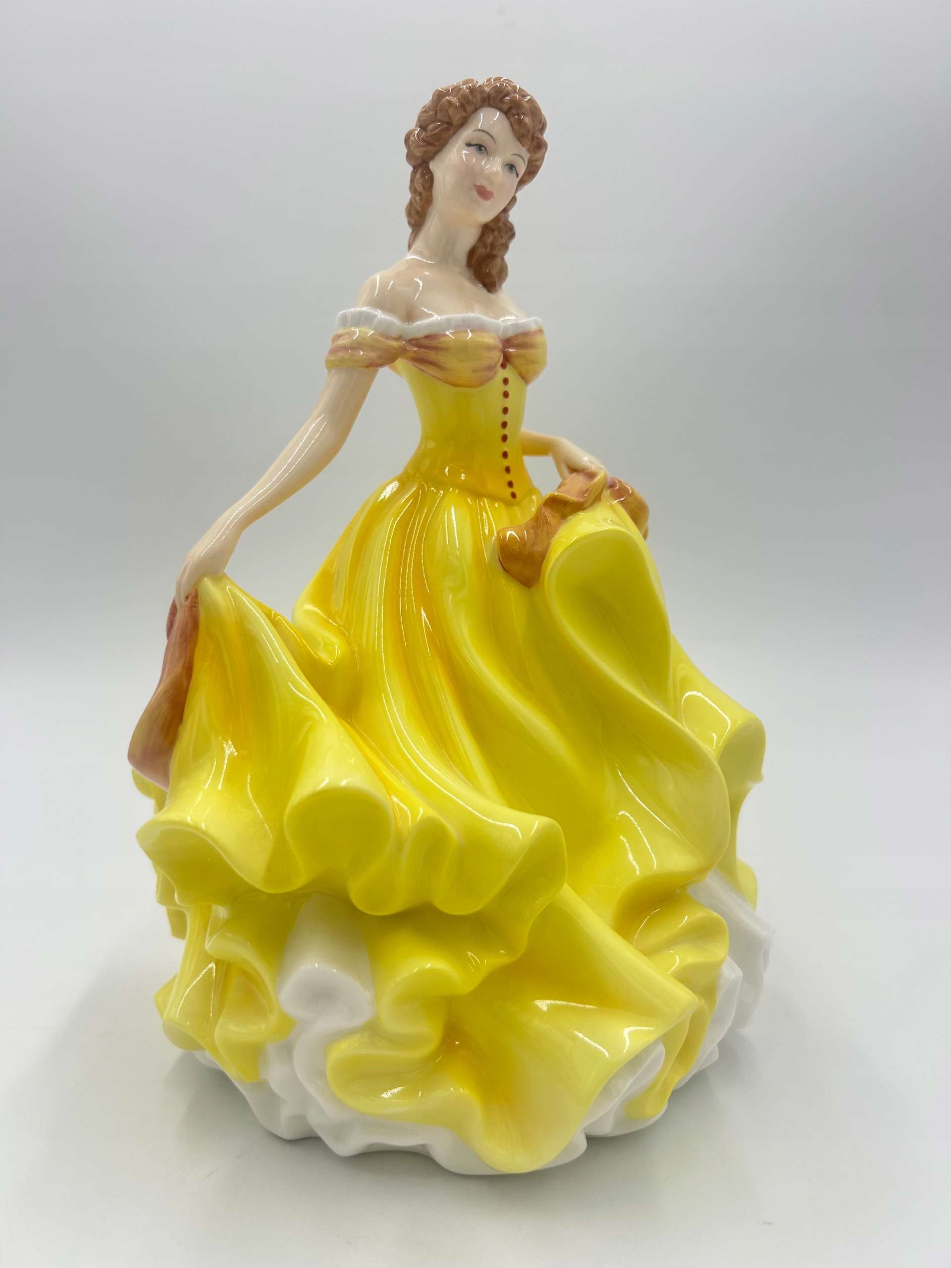На фигурке изображена женщина в элегантном желтом платье и платке. Отличная позиция для коллекционеров и любителей классических английских фарфоровых статуэток.
