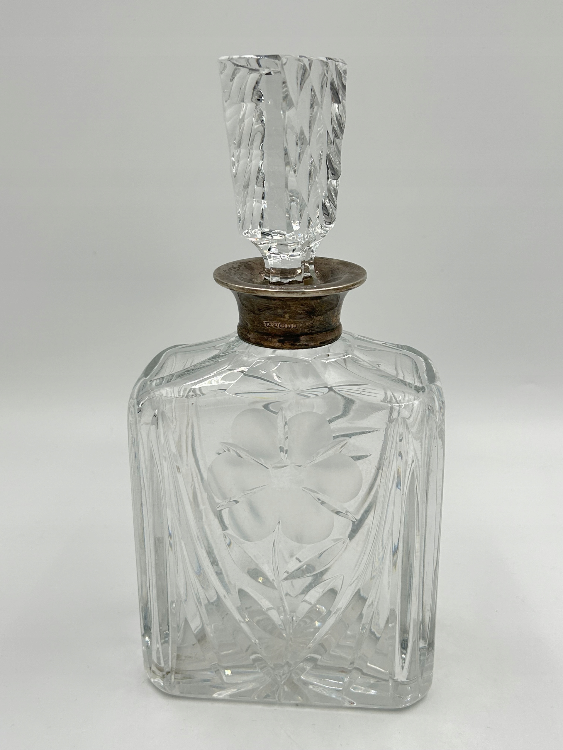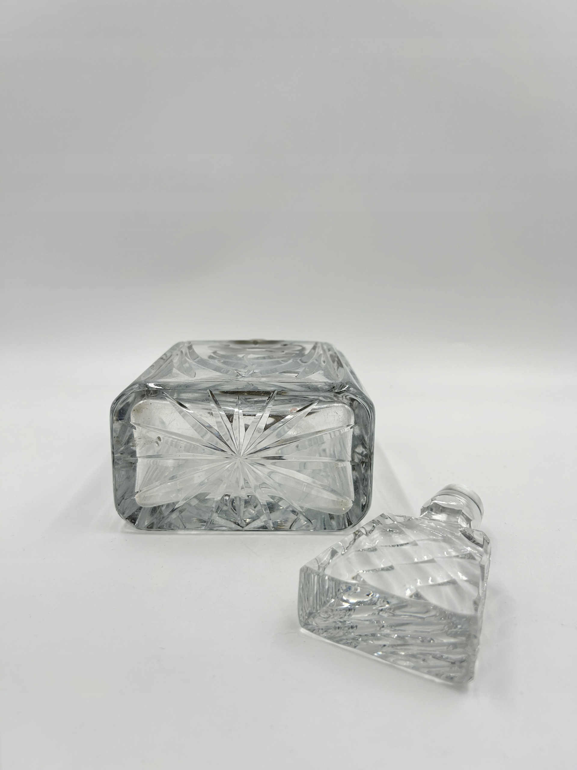 Я представляю вам элегантный графин, идеально подходящий для виски, с глубоким декоративным порезом, покрытой шеей 925 серебра, заканчивая большой и тяжелой декоративной пробкой. Компания 1960 -х годов 20 -го века