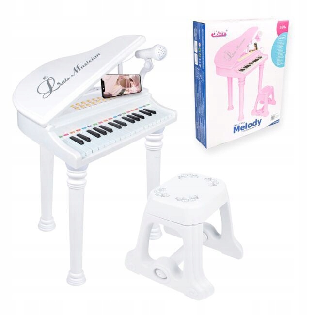 NN PIANINO KASIA — электронное пианино для детей с микрофоном и стулом. Инструмент имеет 37 мини-клавиш, идеально подходящих для маленьких ручек. Орган предлагает множество интересных звуков, музыкального сопровождения и функций, благодаря которым самые маленькие весело проведут время. Вы можете попрактиковаться в игре самостоятельно или подключить к клавишам внешний музыкальный плеер или смартфон и играть под любимые песни. Входящий в комплект микрофон позволяет играть в караоке, а функция записи и воспроизведения позволяет детям почувствовать себя настоящими звездами!