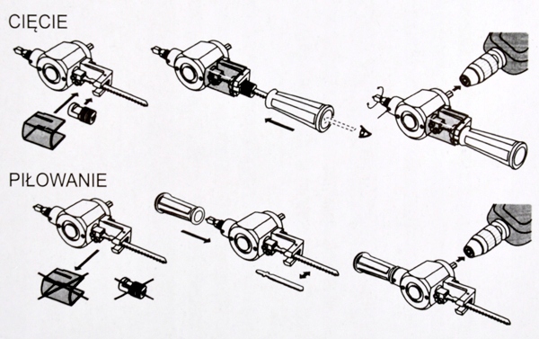 - Мгновенная замена электрической дрели на резак для листового металла и лобзик.