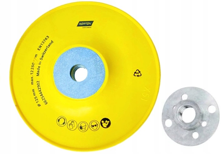 Лучшая шайба/диск для фибродисков на рынке, произведено в Швейцарии известным производителем абразивных материалов под брендом NORTON. Диски крепятся непосредственно к угловой шлифовальной машине с помощью резьбы M14.